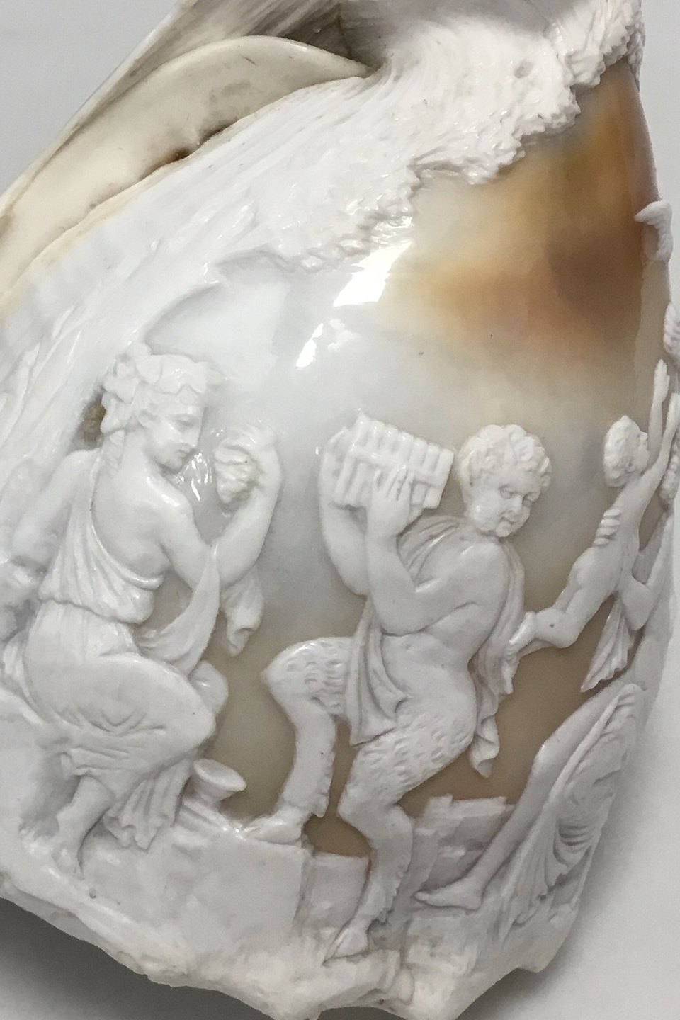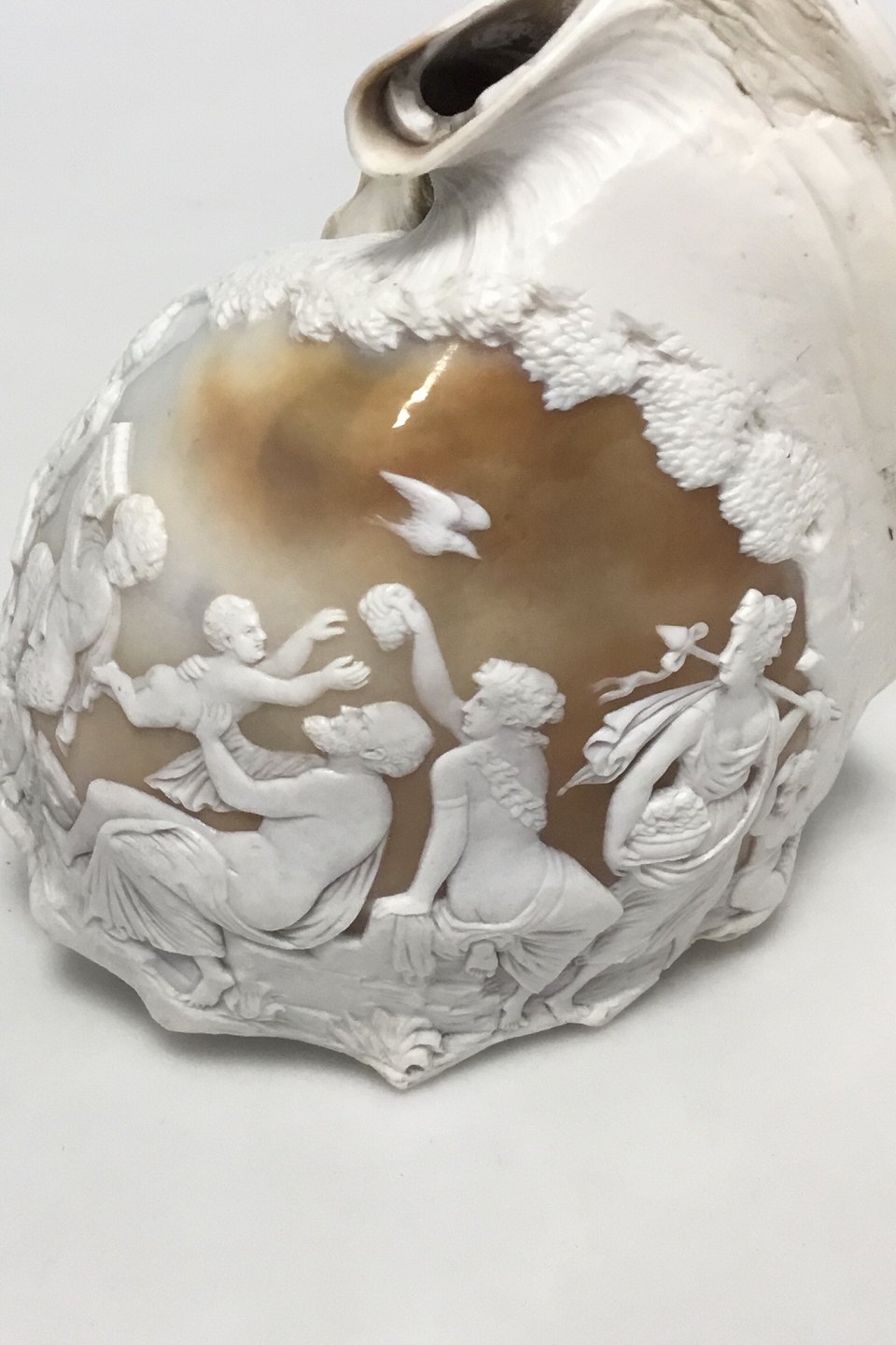 Cameo udskåret konkylie med klassiske motiver. Victoriansk periode ca. 1880 H: 15,5 cm