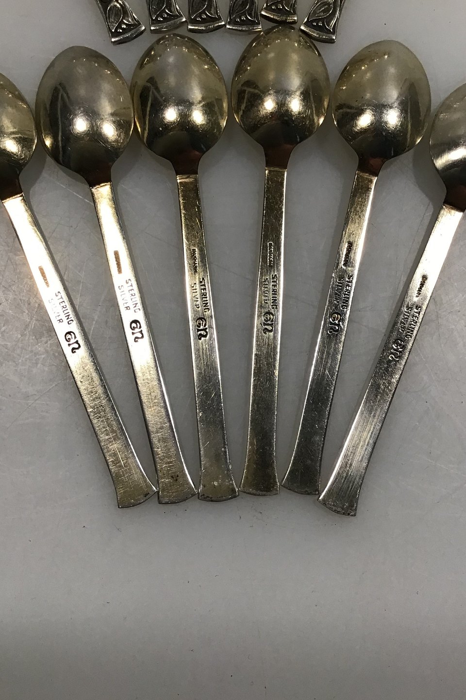 Evald Nielsen Sterling Sølv Kaffeskeer (12)Let forgyldt laf Måler 9.5 cm