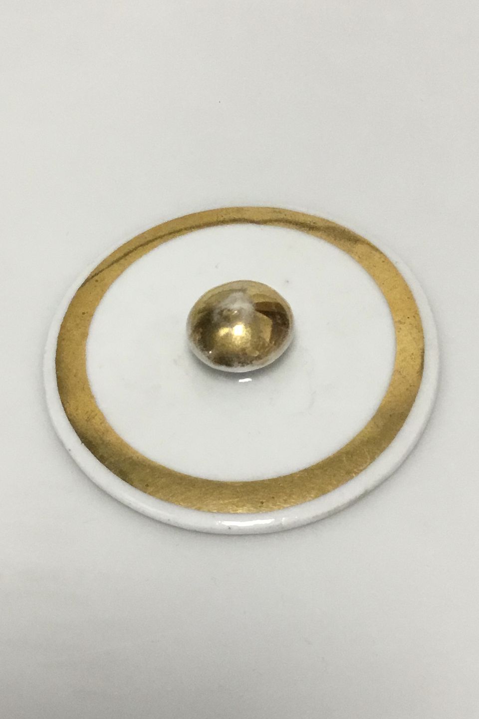 Circular gold painted lid and knob in porcelain for Bing & Grondahl ewer. Diameter 6,2 cm (2 7/16")
