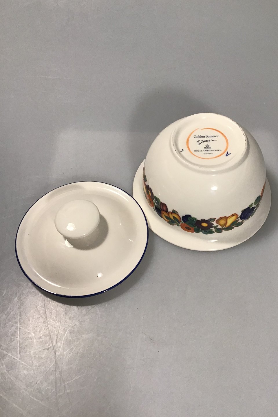 Royal Copenhagen Golden Summer Sugar Bowl No 159 Measures H 9 cm(3 35/64 in) Diam 12 cm (4 23/32 in) Christian Joachim (1870-1943)