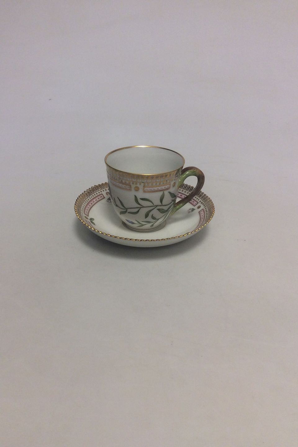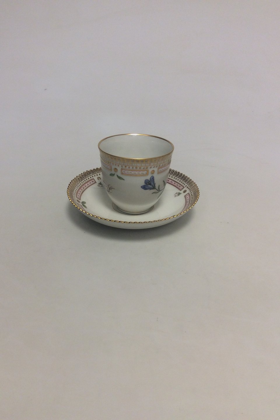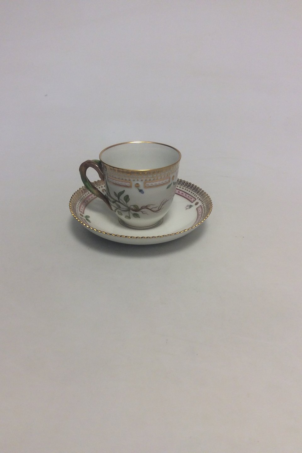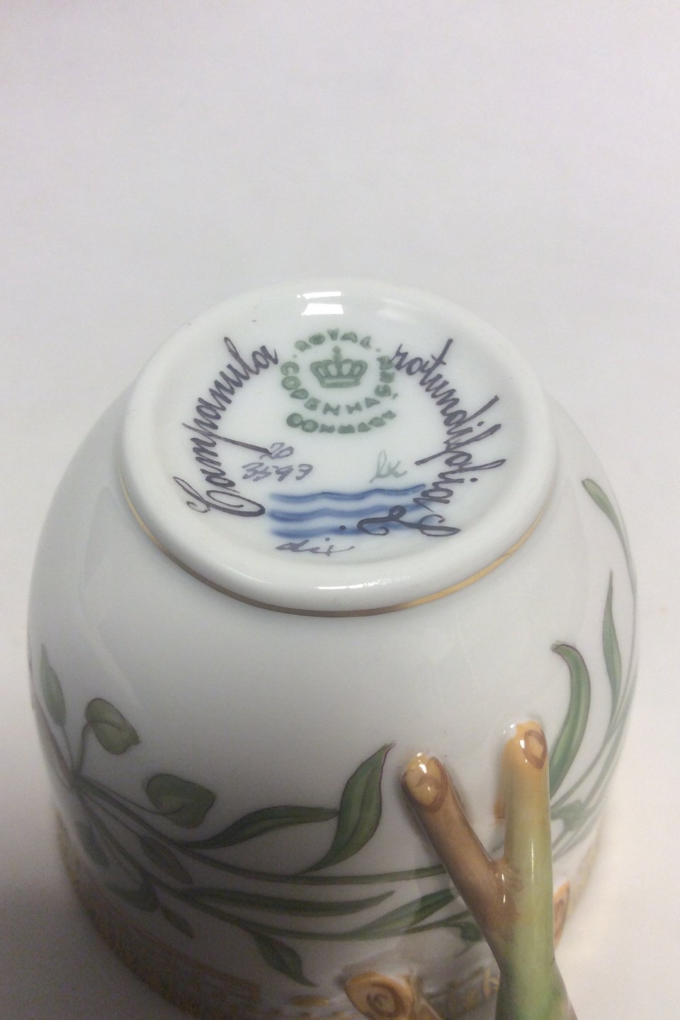 Royal Copenhagen Flora Danica Coffee Cup and Saucer No 20/3597. Latin Name: Campanula Rotundifolia L. Measures Cup: 7 cm / 2 3/4 in. x 7.5 cm / 2 61/64 in. dia. Saucer: 13.8 cm / 5 7/16 in.