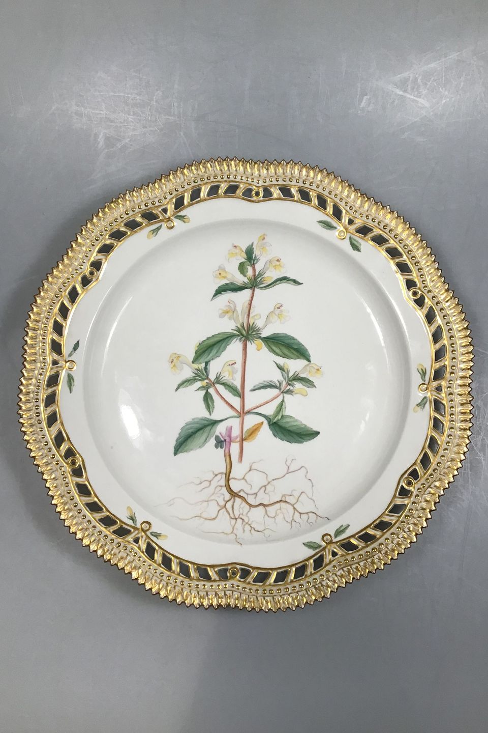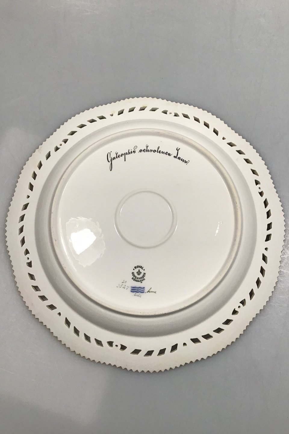 Royal Copenhagen Flora Danica Serving Tray No 3527 Pierced Border .Latin text: "Geleapsis ochroleuca Lauv." Measures Diam 30cm (11 13/16 in) (Tiny repair)