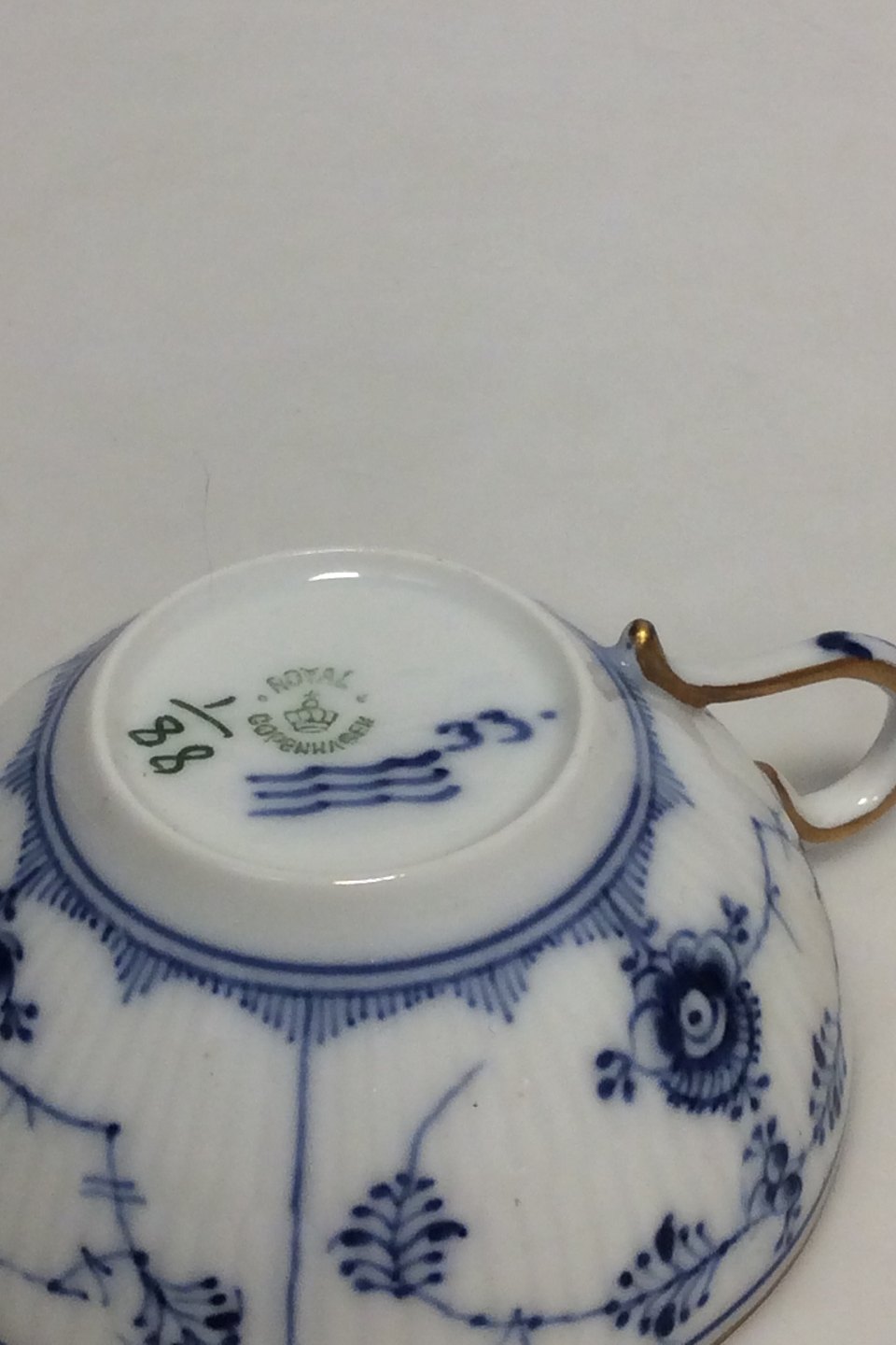 Royal Copenhagen Musselmalet Riflet Kaffekop med guld no 88.