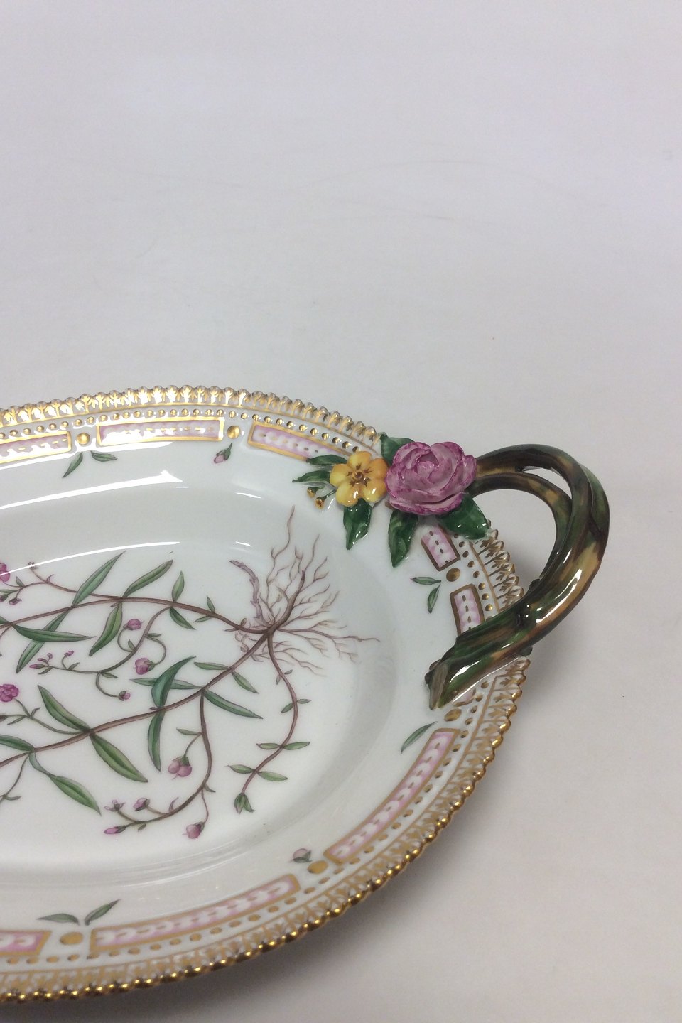 Royal Copenhagen Flora Danica Oval Assiette No 20/3540 Latinsk Navn: Veronica sentellata L Beta villosa Schum. Måler 22,5 cm x 17 cm