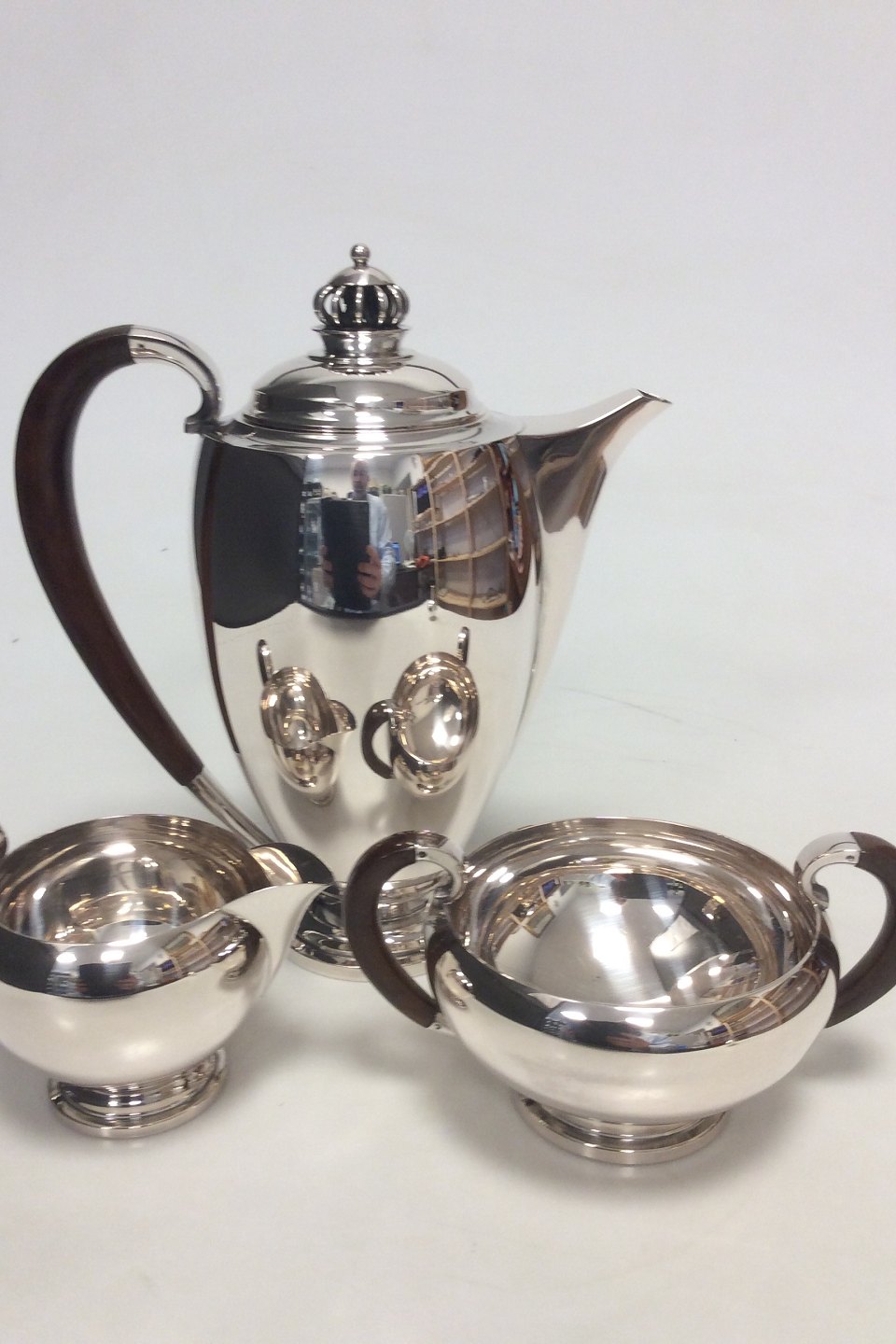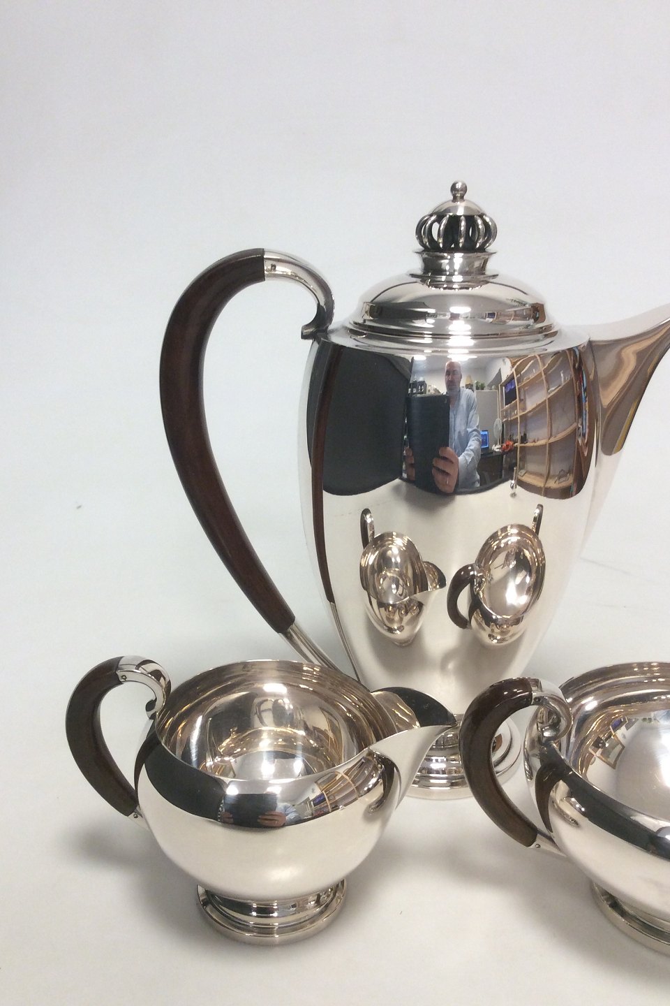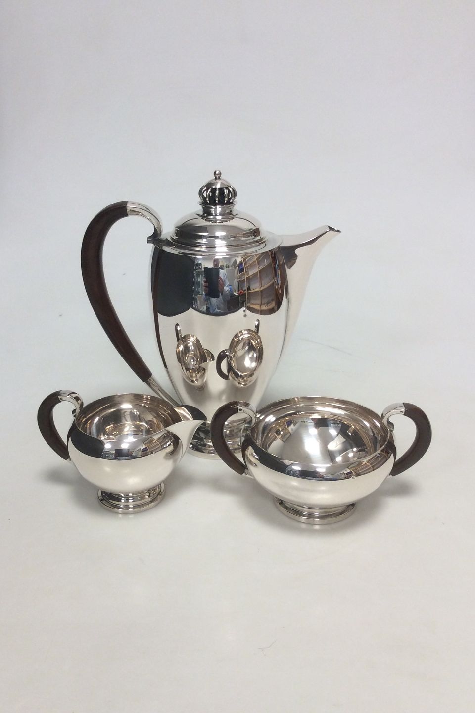 Theodor Sabroe Art Deco Dansk Sølv Kaffesæt med kande, fløde og sukkerskål fra 1942.