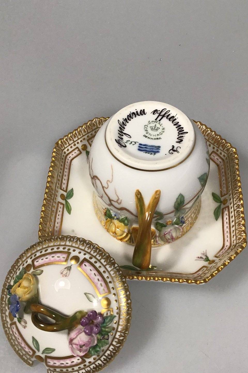 Royal Copenhagen Flora Danica Custard Cup No 255(3514) Latin Name Euphrasia officinalis (eyewort) Measures 8,5cm / 3 1/4". Holds 3 1/4 oz.