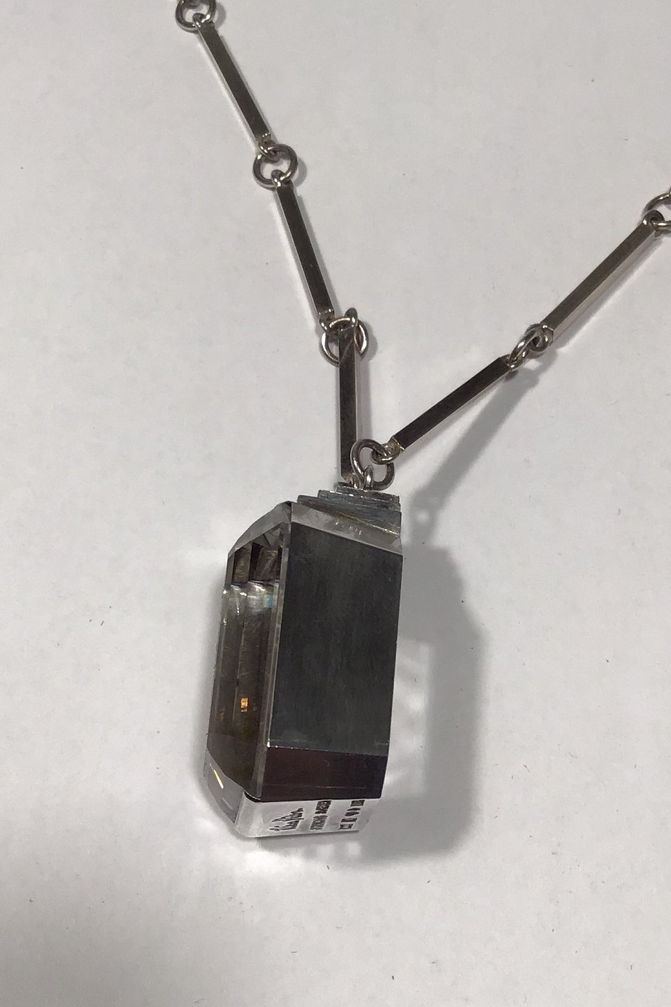 Wiwen Nilsson Sterling Sølv Halskæde med Bjerkrystal Vedhæng (U8 1946) Måler L 67 cm Vedhæng 2 cm x 3.7 cm
