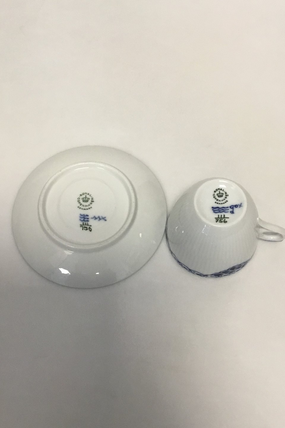 Royal Copenhagen Princess Coffee Cup and Saucer No 756. Measures 6.4 cm / 2 33/64 in. x 7.7 cm / 3 1/32 in. dia. Saucer: 13.2 cm / 5 13/64 in.