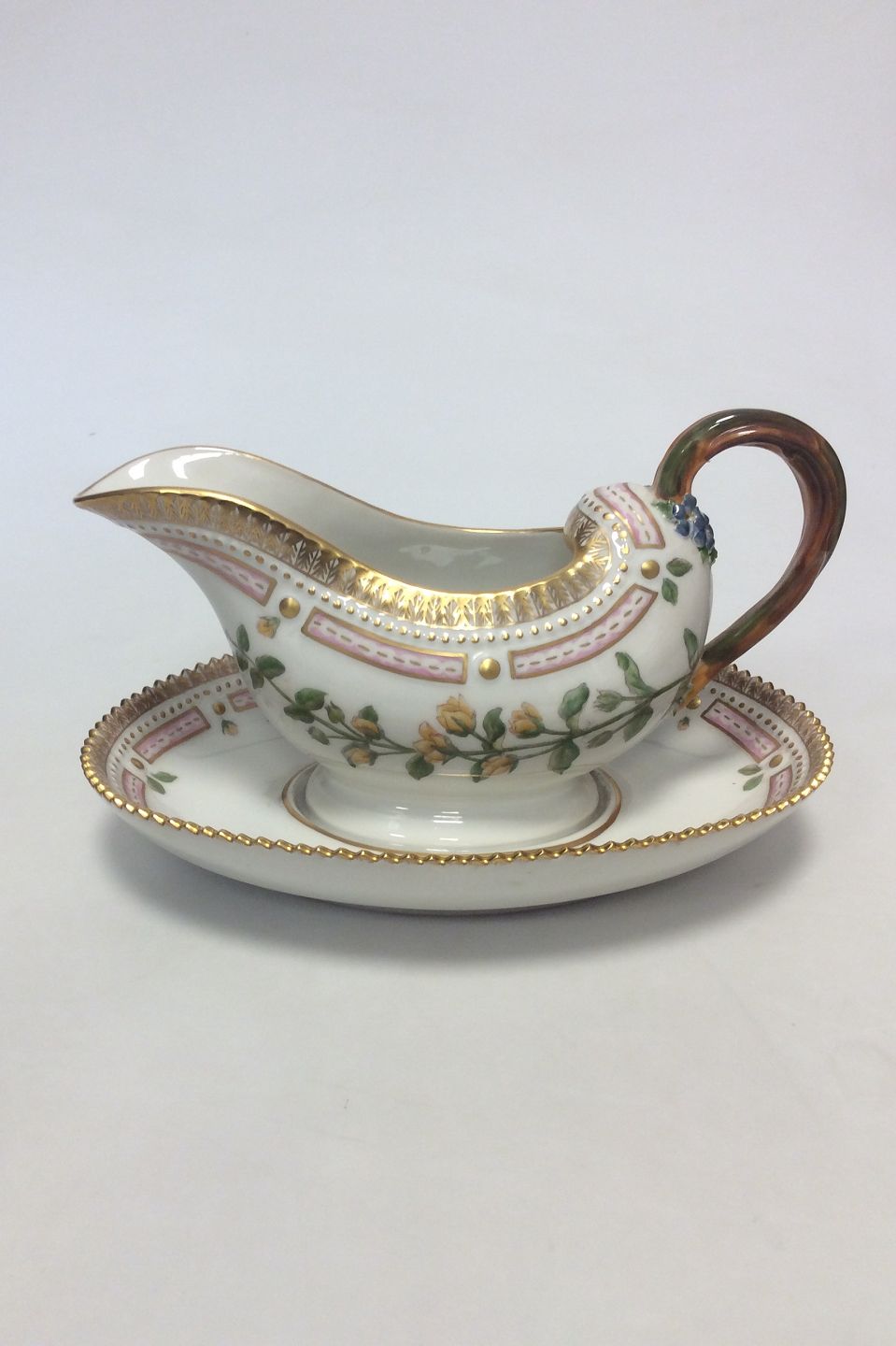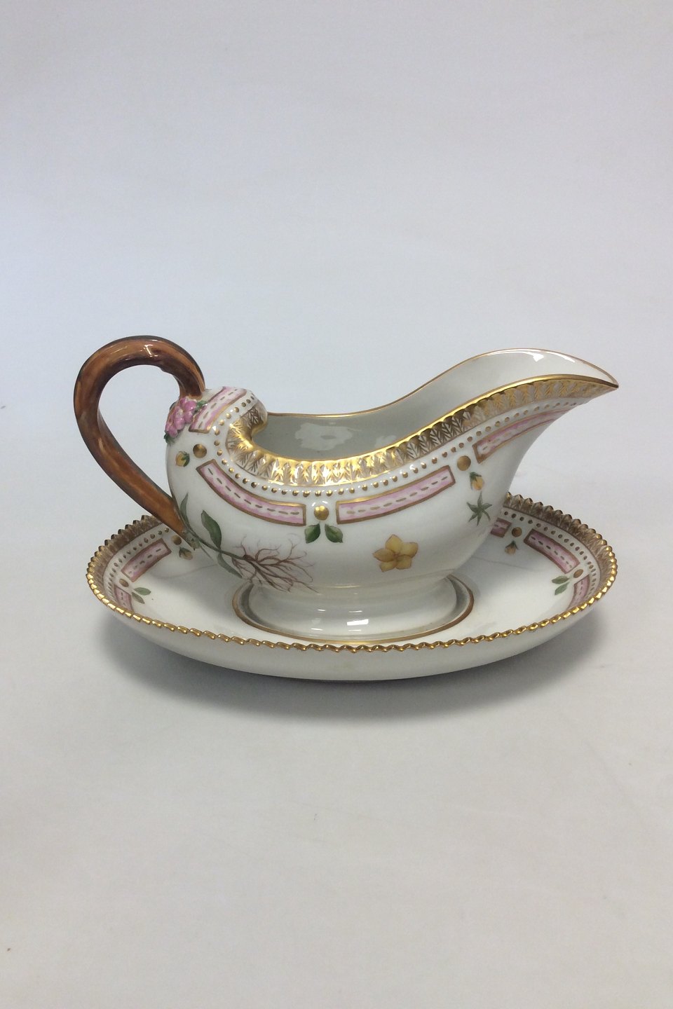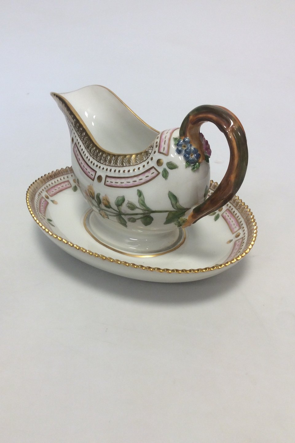 Royal Copenhagen Flora Danica Saucekande med underfad No 20/3556. Latinsk navn: Lysimachia nummularia L. Måler 23 cm