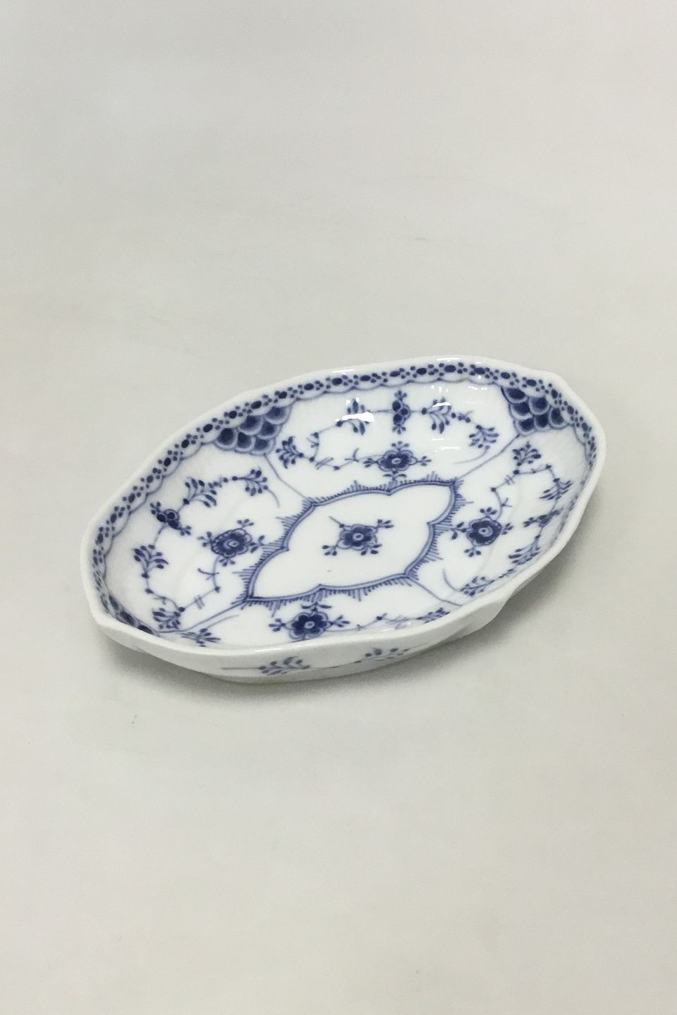 Royal Copenhagen Musselmalet Halvblonde oval assiet No 551. Måler 18,3 cm