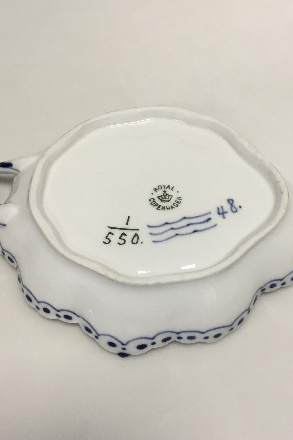 Royal Copenhagen Blue Fluted Half Lace Small Leaf-shaped Cake dish No 550. Measures 18.5 cm / 7 9/32 in. Chip on edge