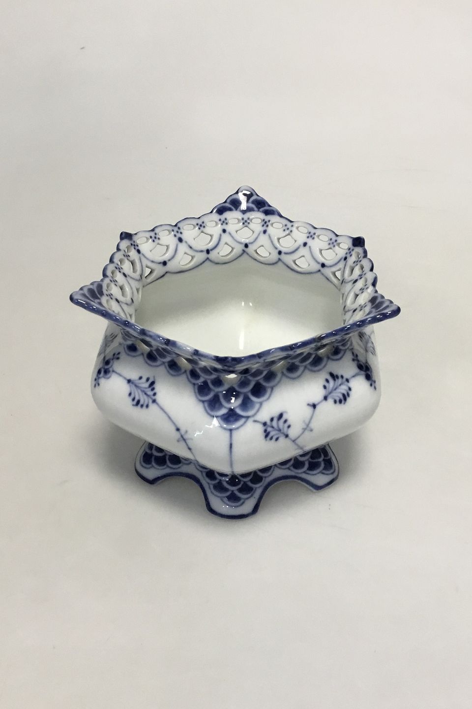 Royal Copenhagen Blue Fluted Full Lace Sugar Bowl No 1114. Measures 14 cm / 5 33/64 in. Repair on edge