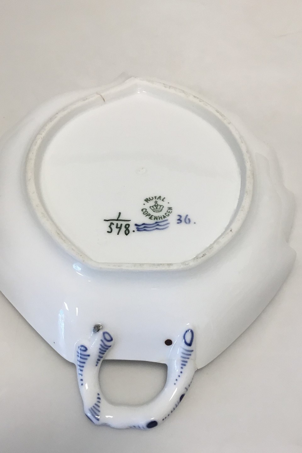 Royal Copenhagen Blue Fluted Half Lace Leaf-shaped Cake dish No 547. Måler 18.5 cm / 7 9/32 in. Minor chips