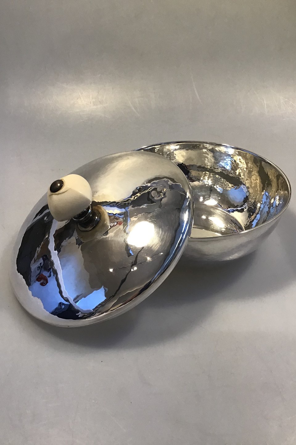 Tysk Sølv Lågfad/Lågskål med elfenbensknop (800) Måler H 12 cm Diam 18 cm Vægt 555 gr