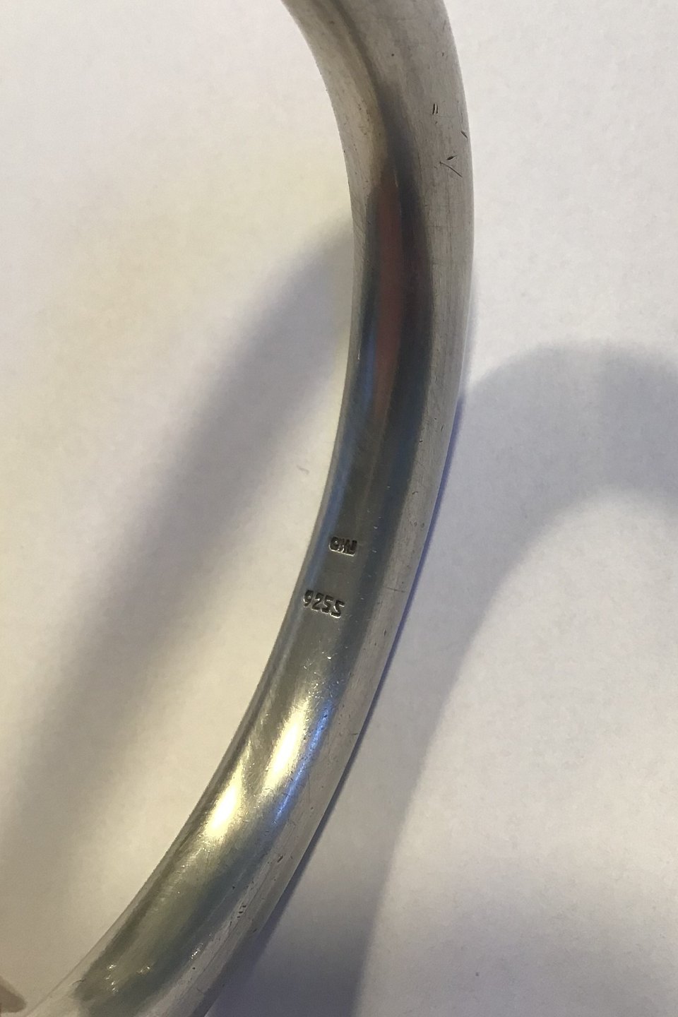 Ole W Jacobsen Sterling Sølv Armring Måler indvendigt 6.4 cm x 5.5 cm Vægt 43 gr(Lette brugsspor)