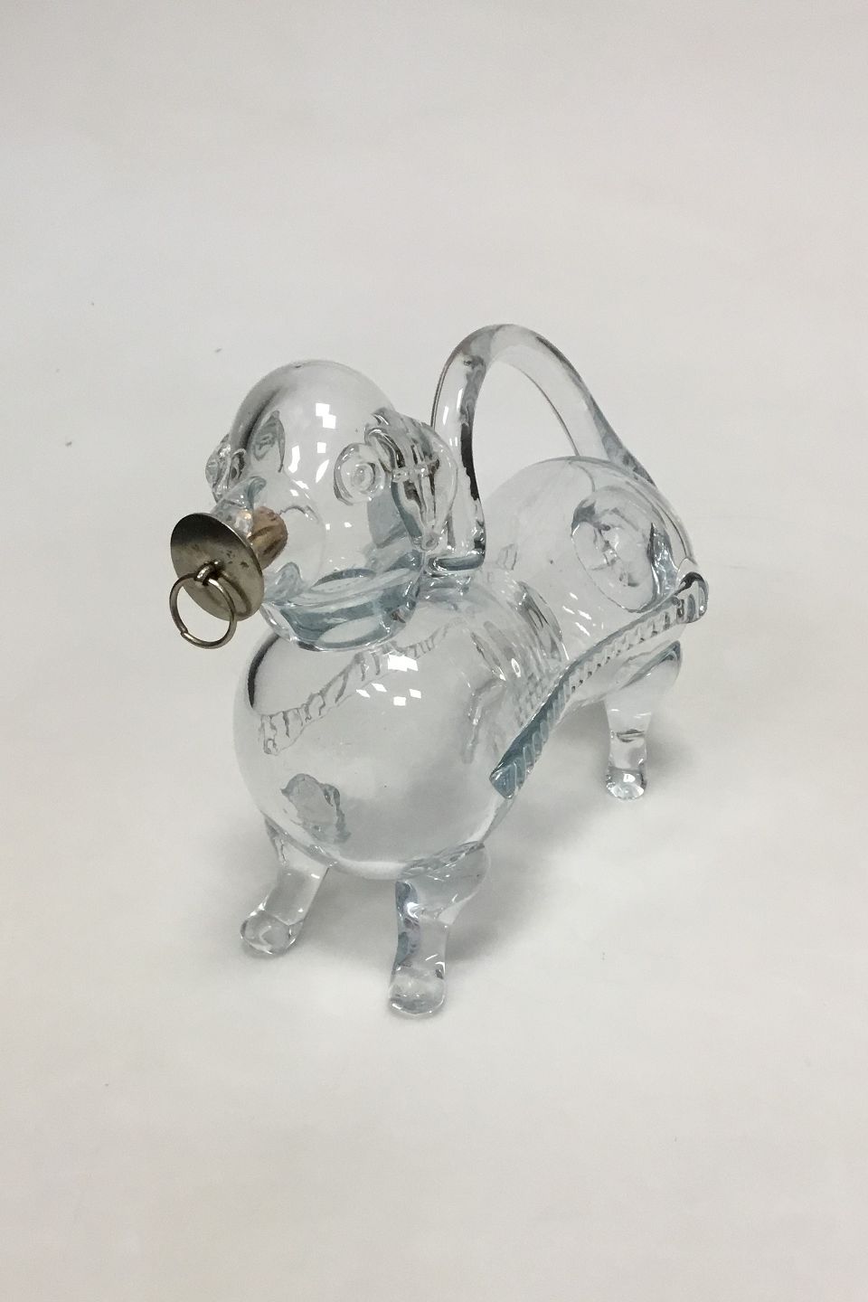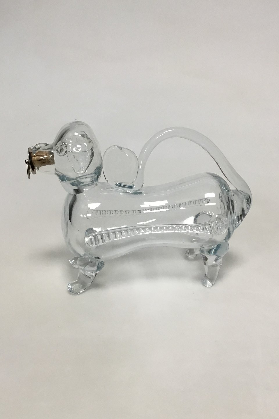 Presumably Holmegaard Bottle formed as a Dog. Measures 21 cm / 8 17/64 in. Lashes on one leg