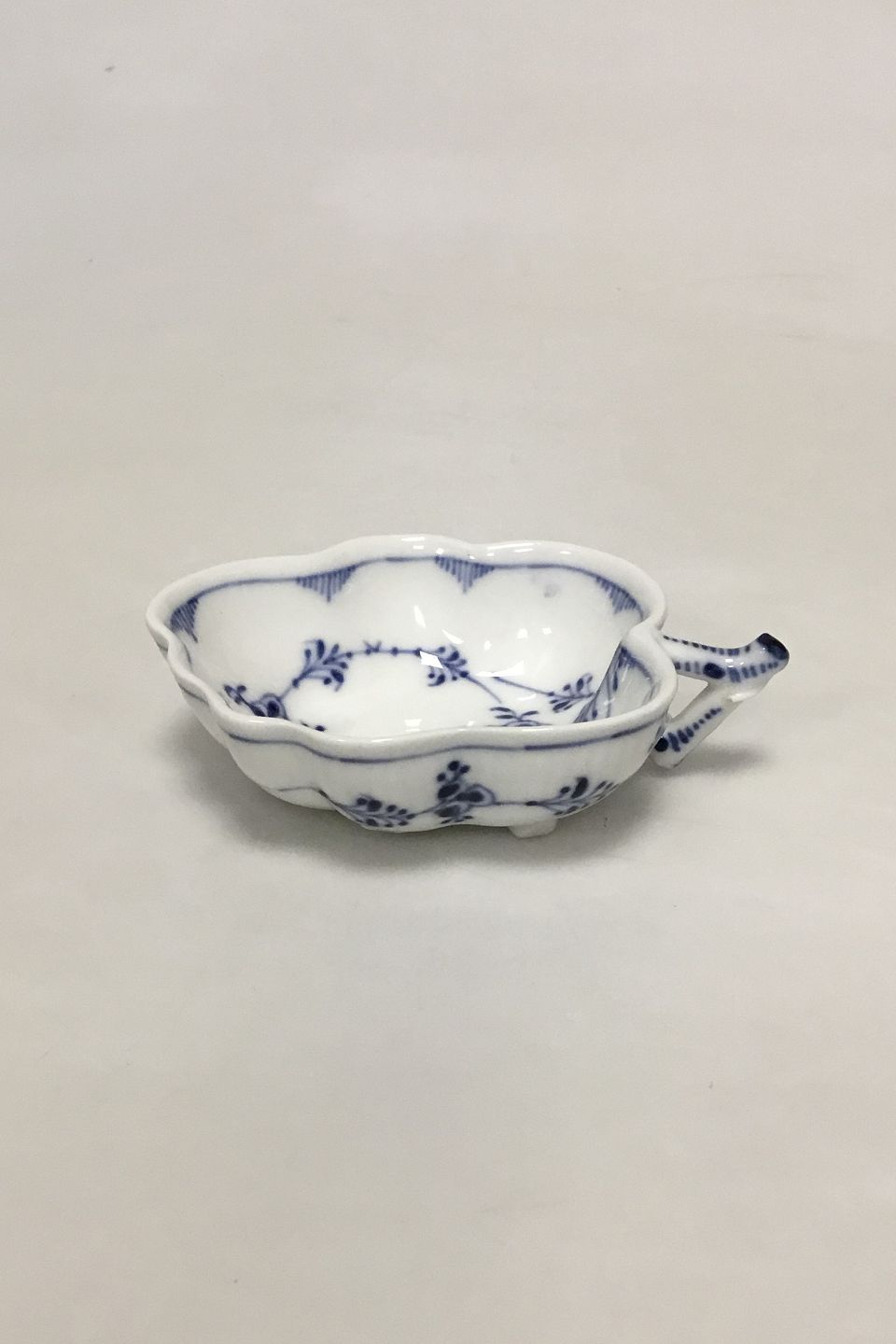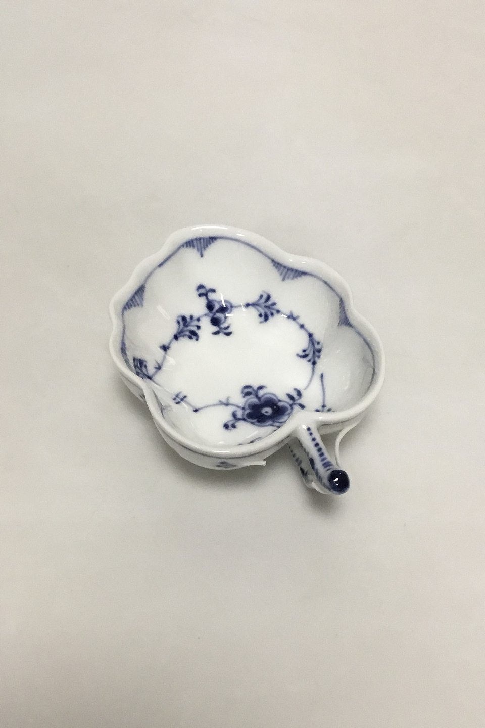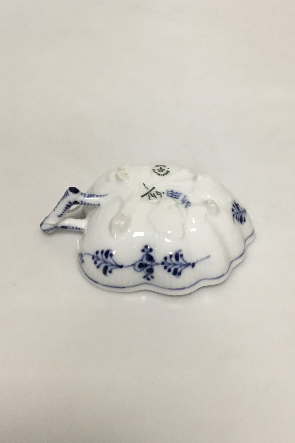 Royal Copenhagen Musselmalet Riflet Bladformet Asiet No 149. Measures 11.5 cm / 4 17/32 in. Chip on Handle