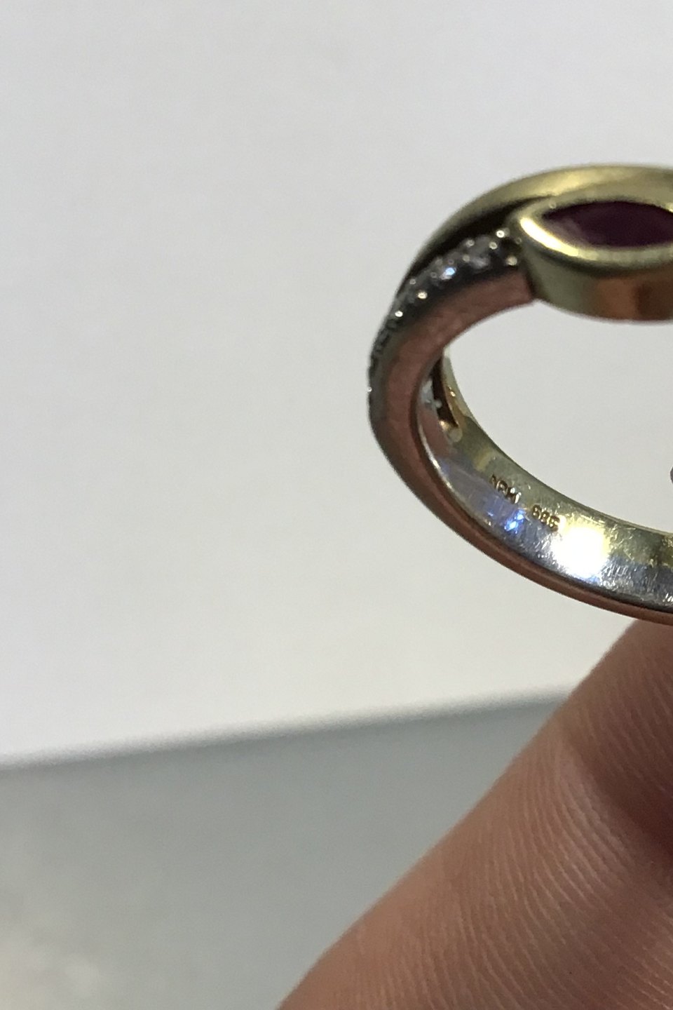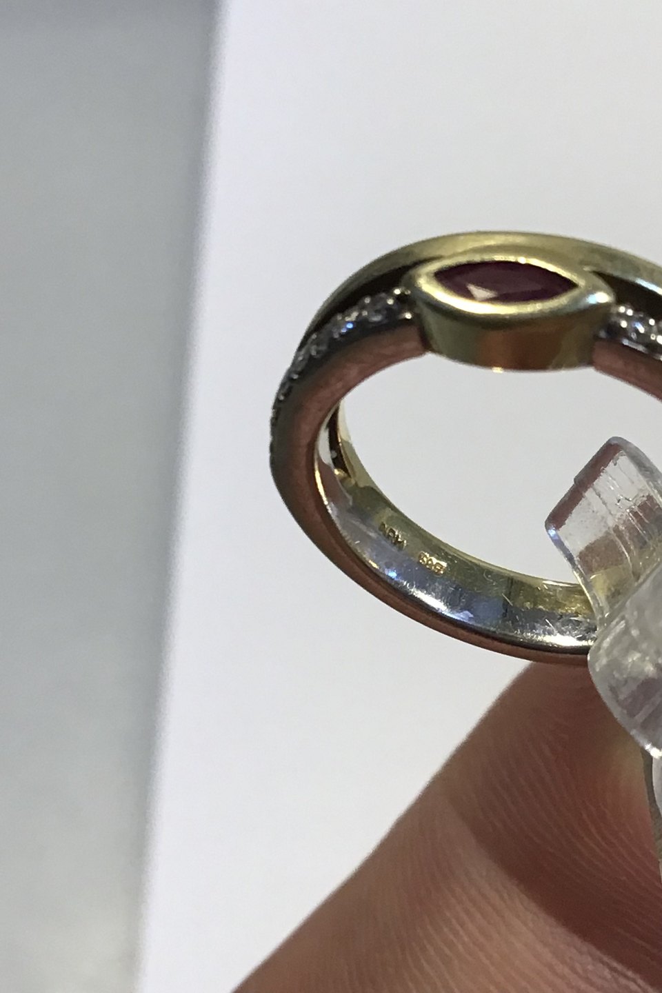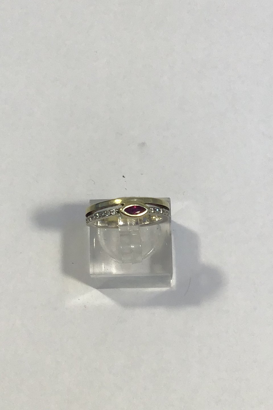 Niels Ruddy Hansen 14K Guld ring med Rubin og Brillanter (0.11 ct) Ring Str 49(US 4 3/4) Vægt 4.4 gr/0.16 oz