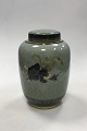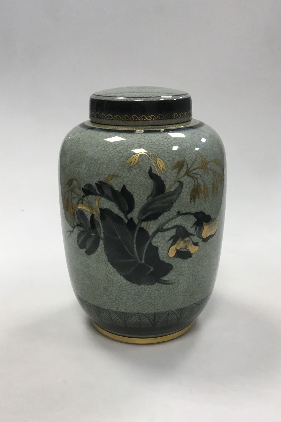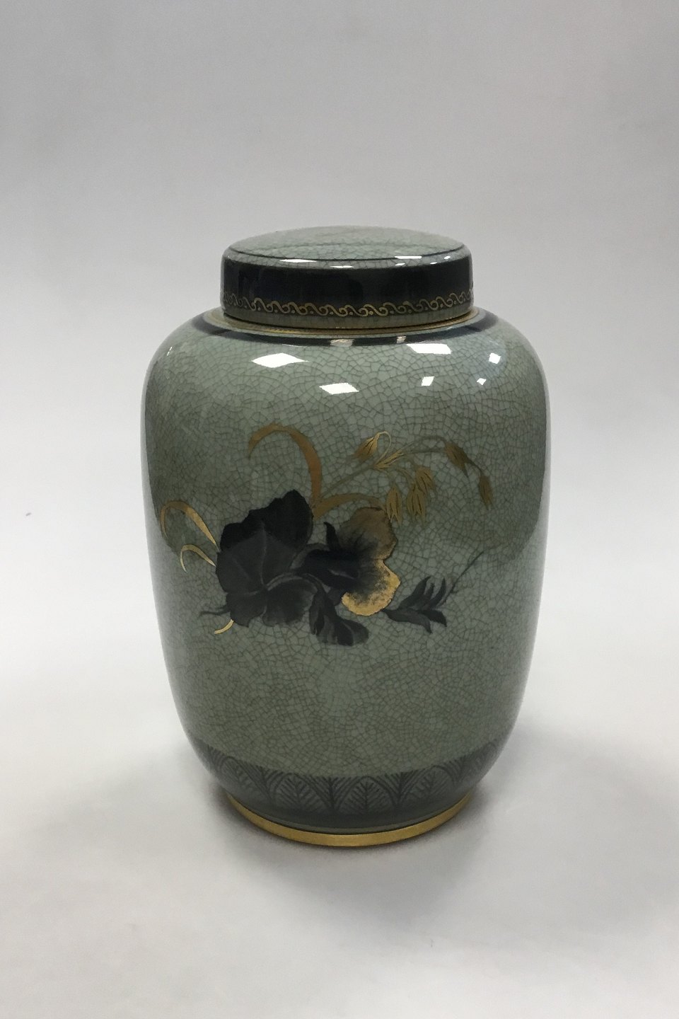 Royal Copenhagen Green Cracle Glaze Lidded Vase/Urn with Flower decoration with Gold No 5010/888 . Measures 23,5 cm / 9 1/4 in.