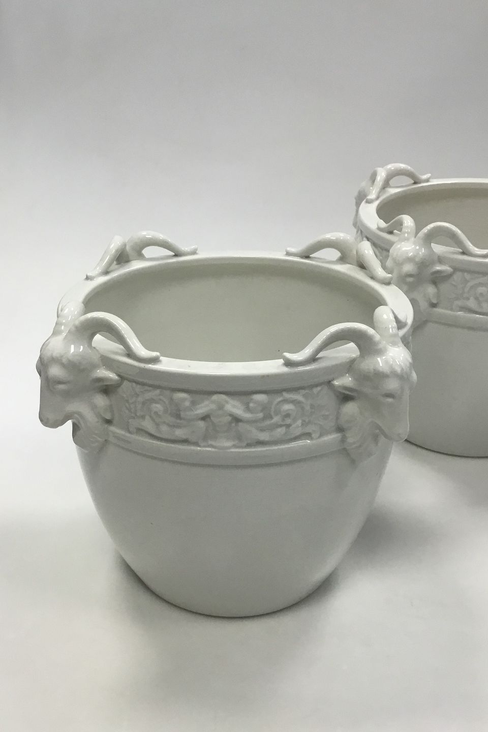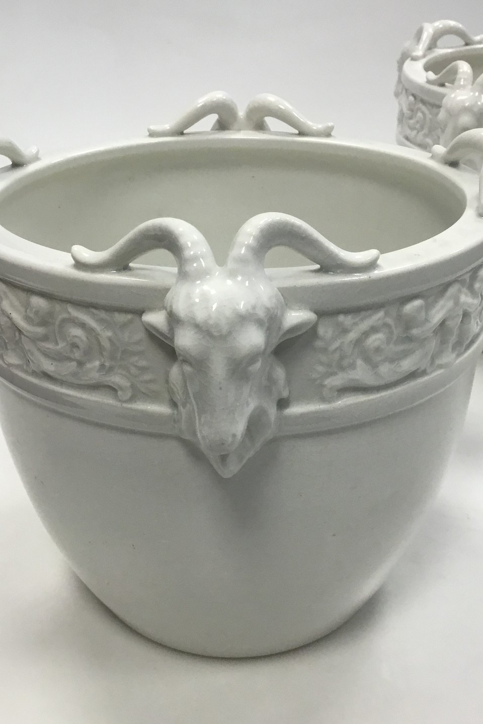Villeroy & Boch Sæt på 2 urtepotteskjulere af hvid fajance. Dekoreret med vædderhoveder. Måler 19,5 cm høj(7 9/32 in. High)