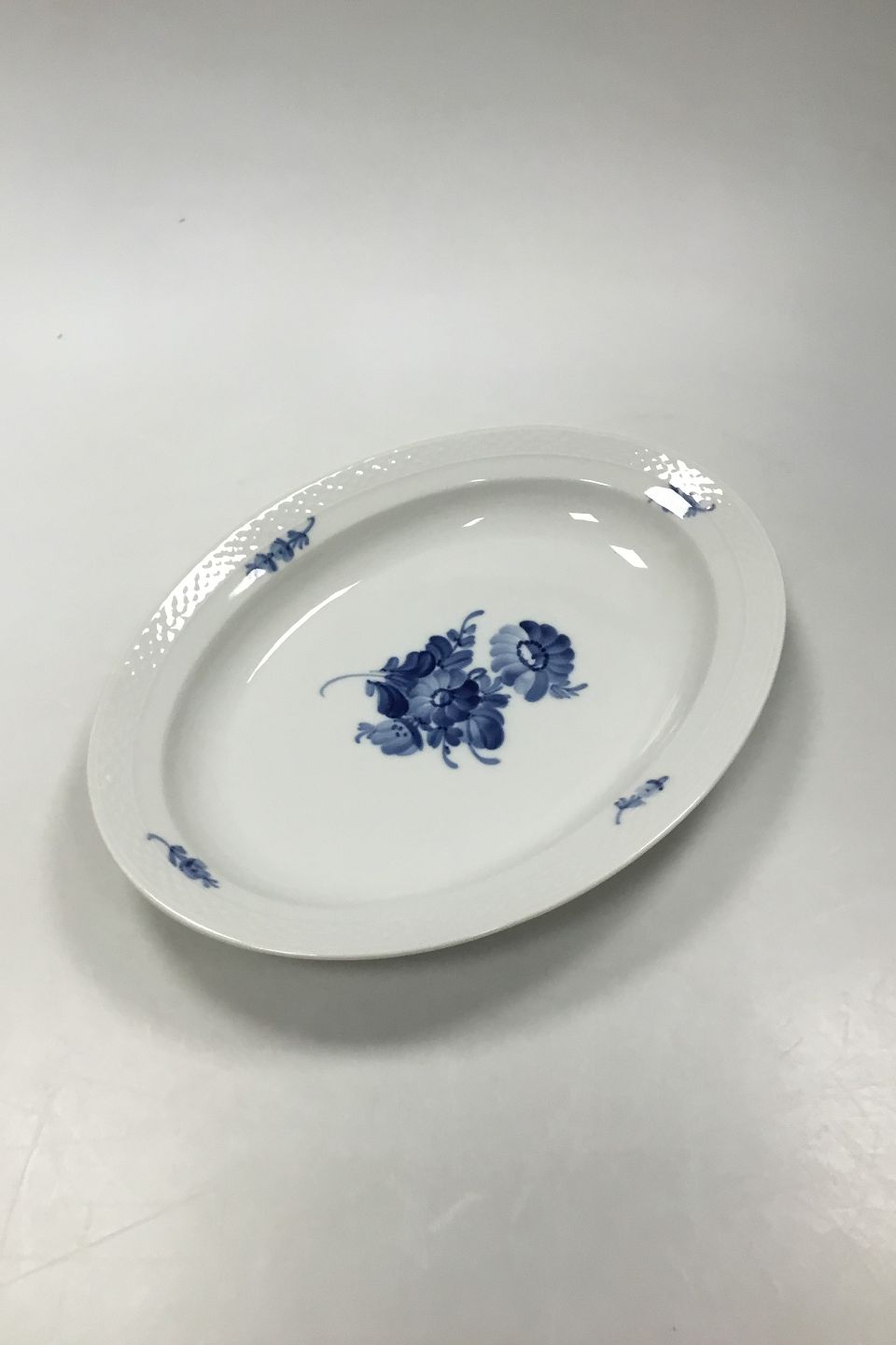 Royal Copenhagen Blå Blomst Flettet Ovalt Fad No 8016. Måler 34 x 25 cm (13 25/64 x 9 27/32 in). I fin stand.