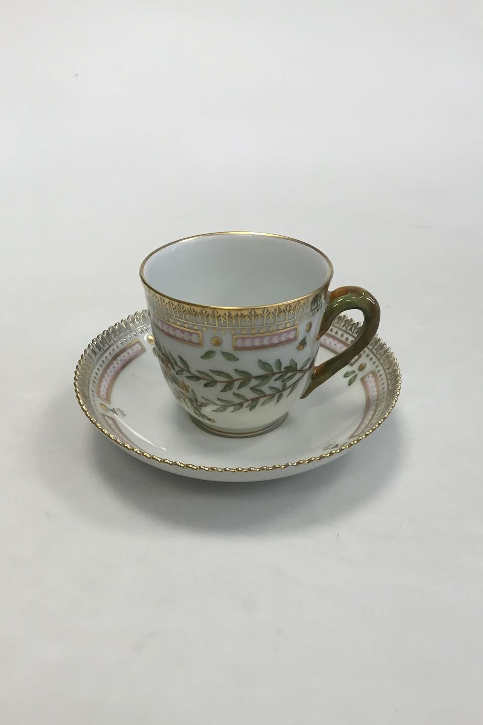 Royal Copenhagen Flora Danica Kaffekop og Underkop No 20/3597. Latinsk Navn: Sedum rupestre Oed. Måler Kop: 7 cm x 7,5 cm dia. Underkop: 13,8 cm