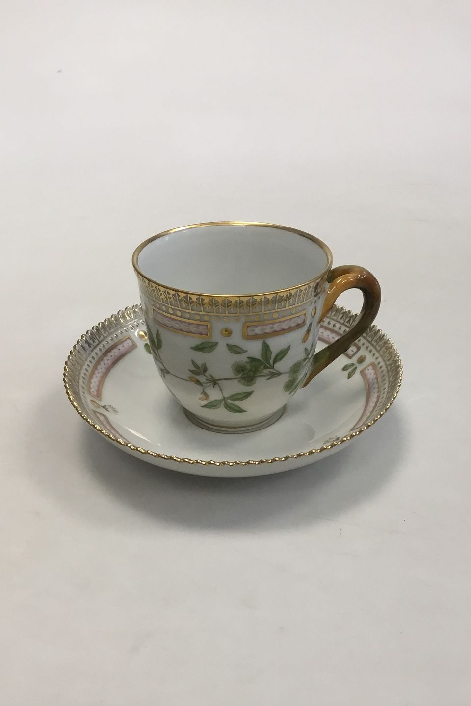 Royal Copenhagen Flora Danica Coffee Cup and Saucer No 20/3597. Latin Name: Medicaga polymorpha L. Measures Cup: 7 cm / 2 3/4 in. x 7.5 cm / 2 61/64 in. dia. Saucer: 13.8 cm / 5 7/16 in.