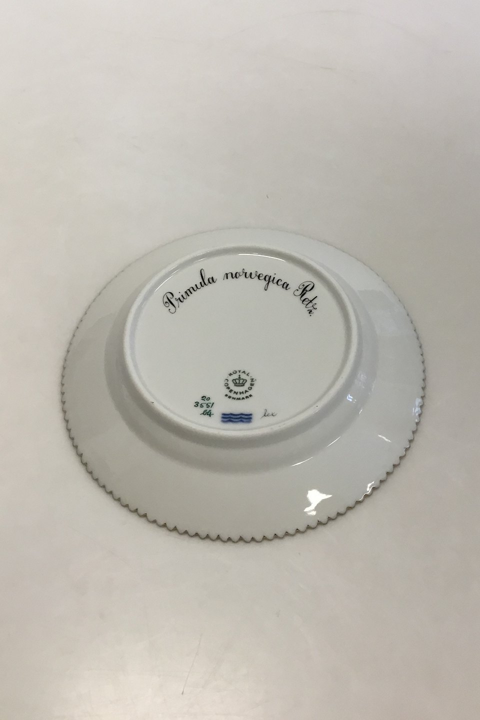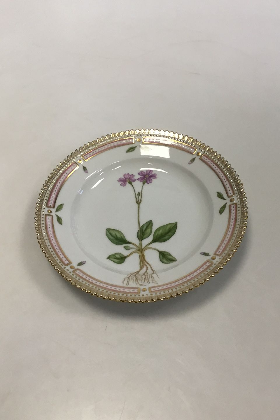 Royal Copenhagen Flora Danica Dessert Tallerken No 20/3551 Latinsk Navn: Primula norwegica Retz Måler 17 cm