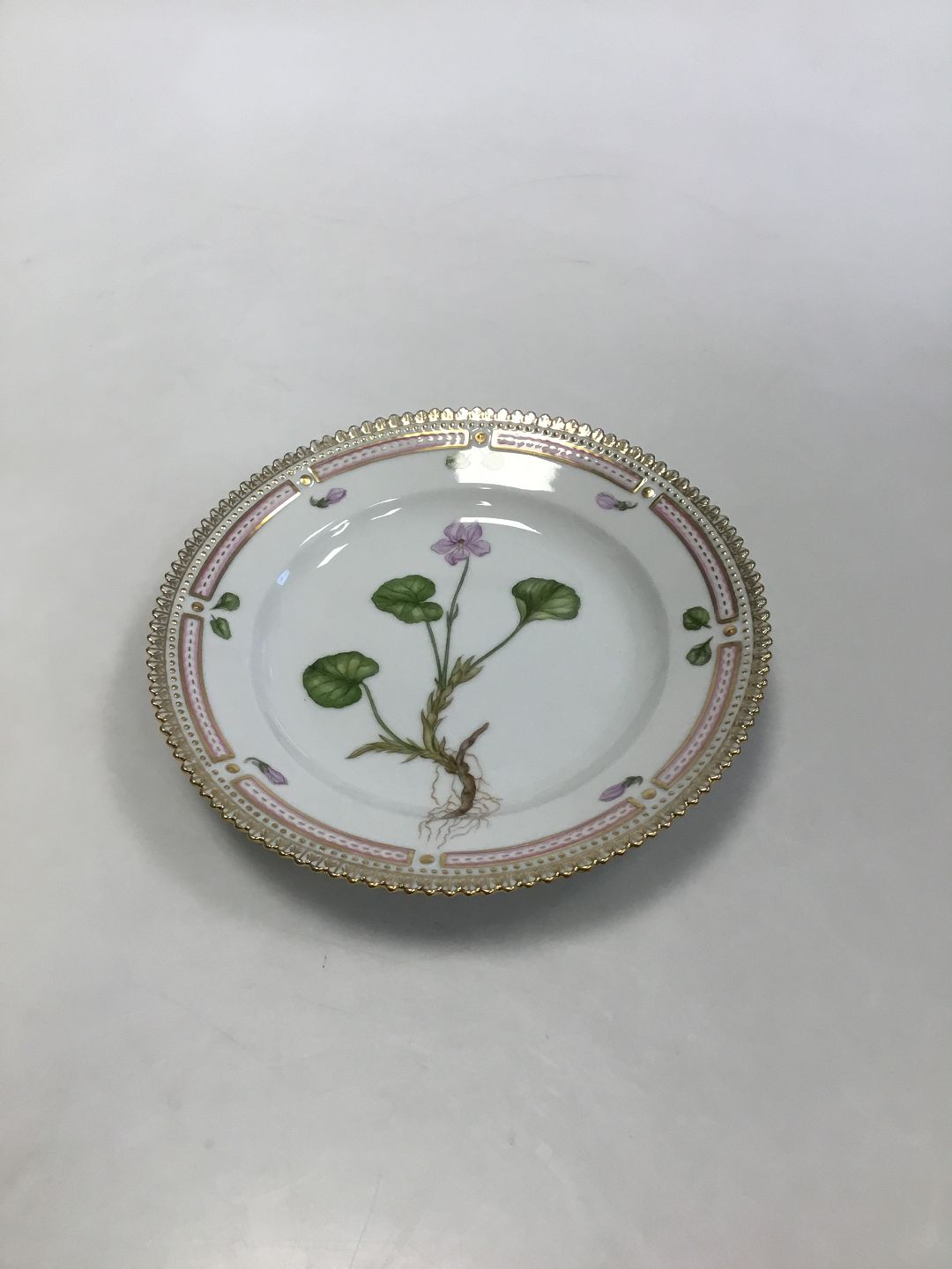 Royal Copenhagen Flora Danica Dessert Plate No 20/3551 Latin Name: Viola palustris L Measures 17 cm (6 11/16")