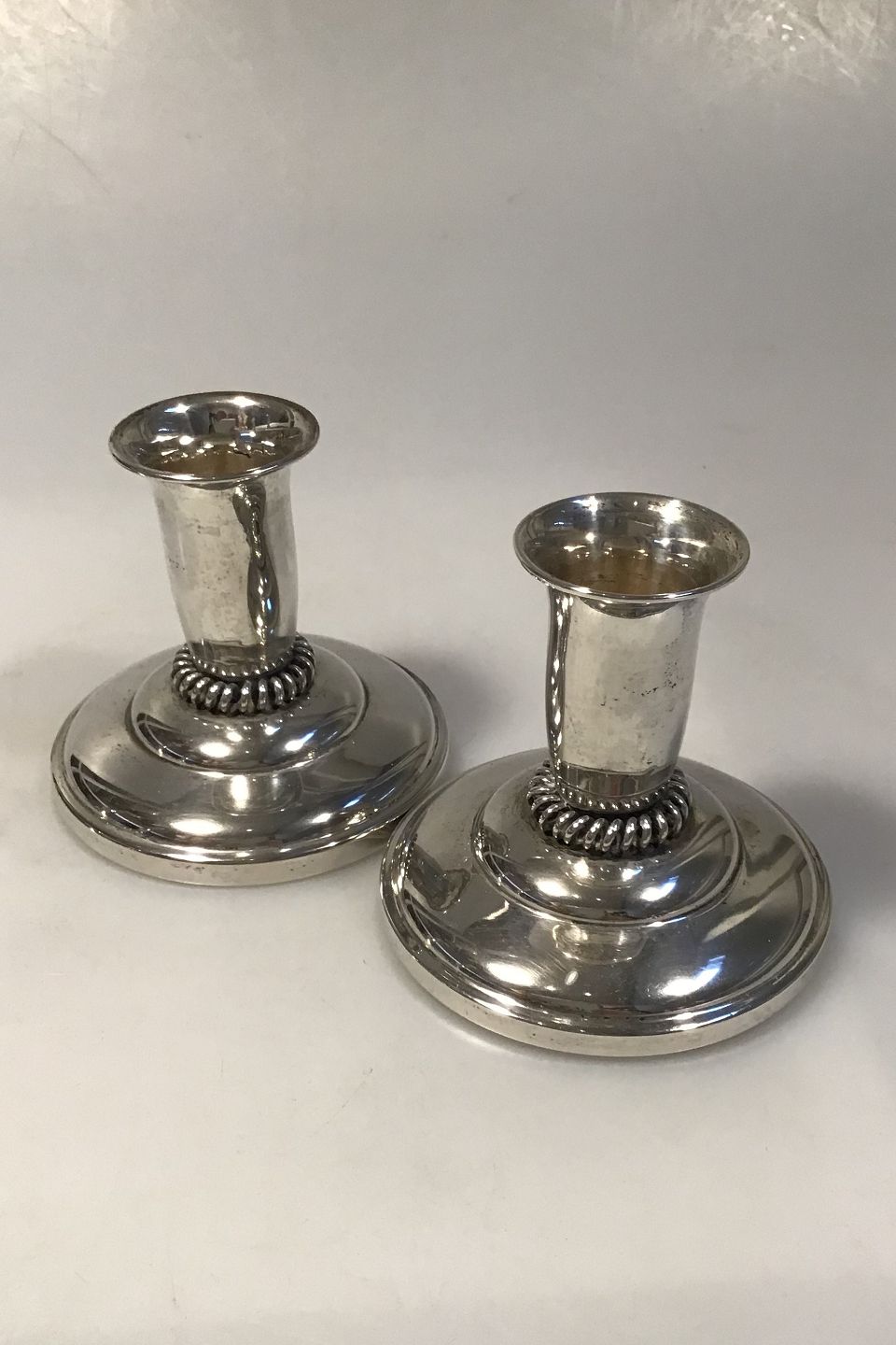 Danske Sølv Lysestager, Hugo Grün (2) Måler H 8 cm( 3 5/32 in) Samlet vægt 318.8 gr/11.25 oz (Udfyldte) Brugsspor