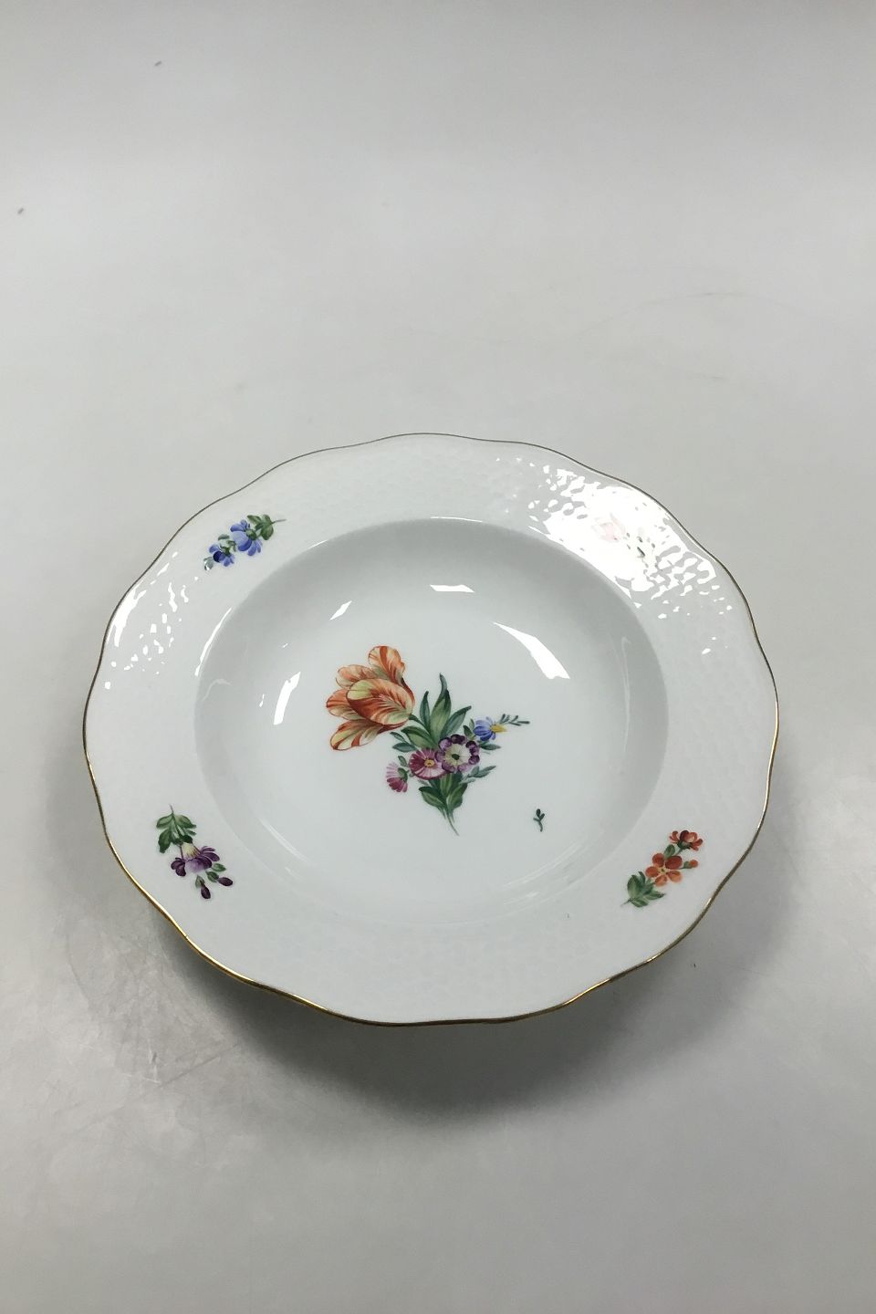 Royal Copenhagen Saxon Flower Light Bee Cell Deep Plate No 493/2025. Measures 23,5 cm (9 1/4 in).