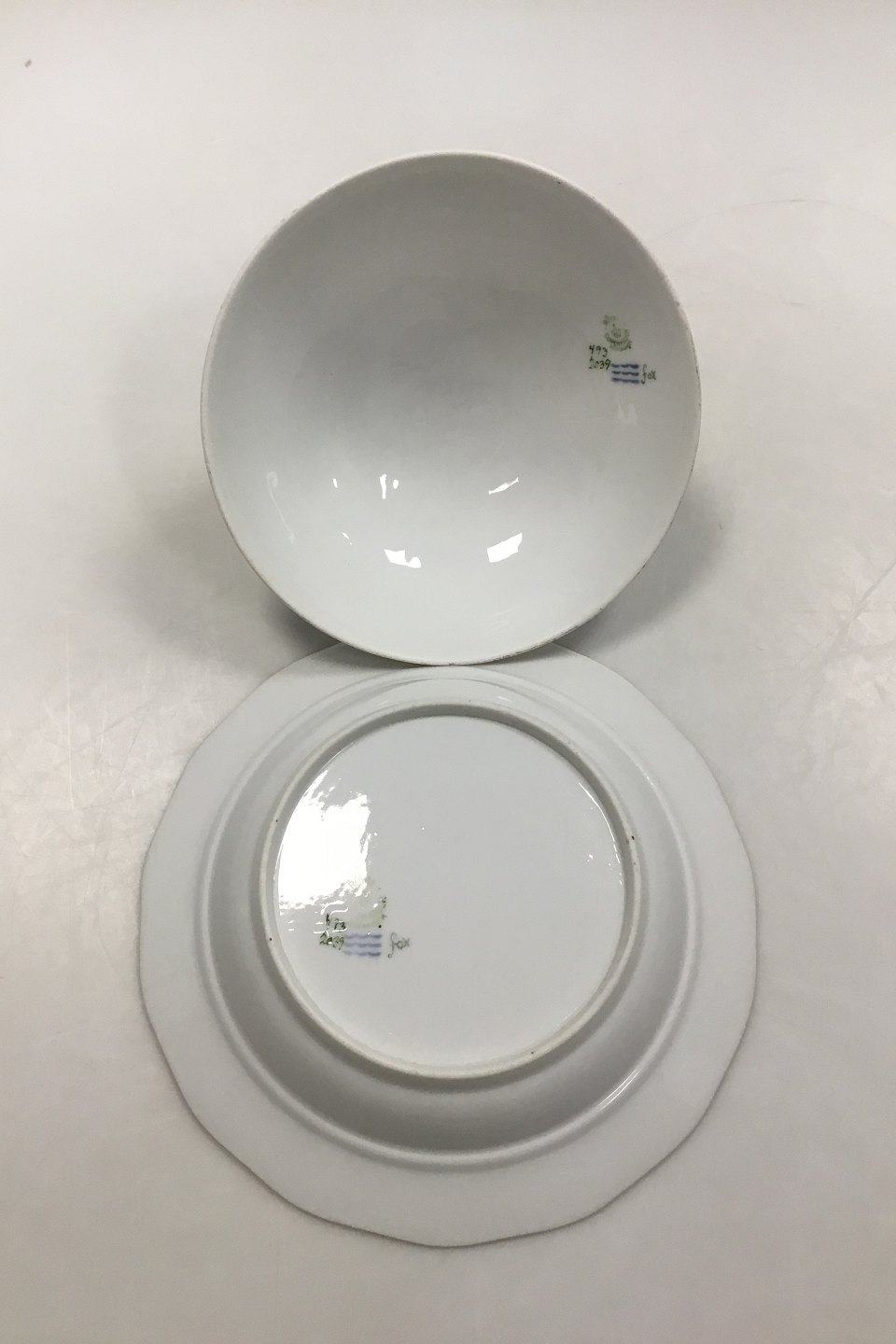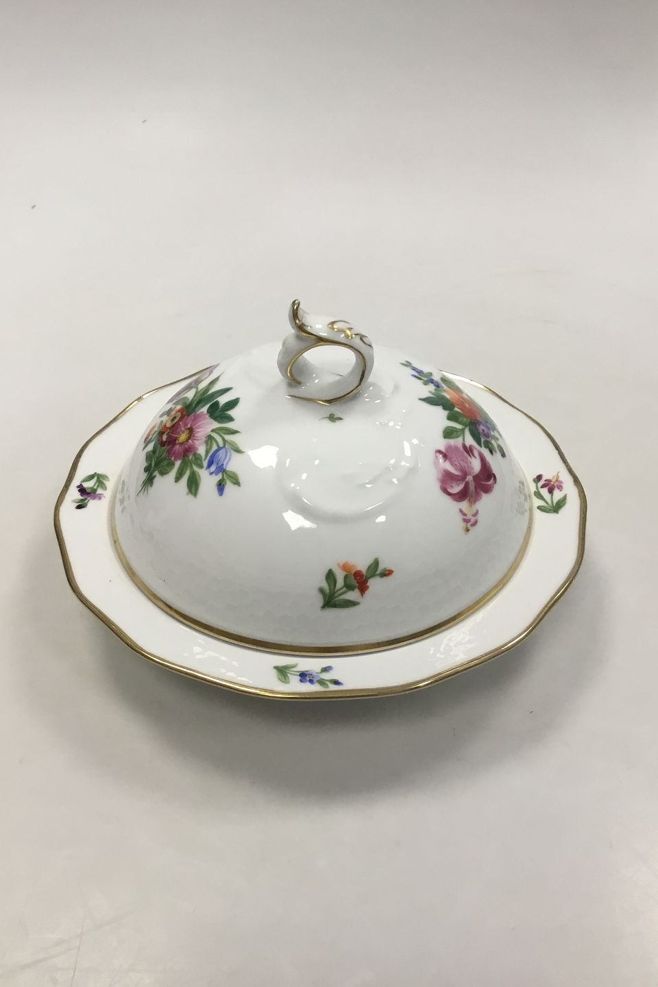 Royal Copenhagen Saksisk Blomst Let Bicelle Lågfad No 493/2039. Måler 21 x 13 cm (8 17/64 x 5 1/8 in).