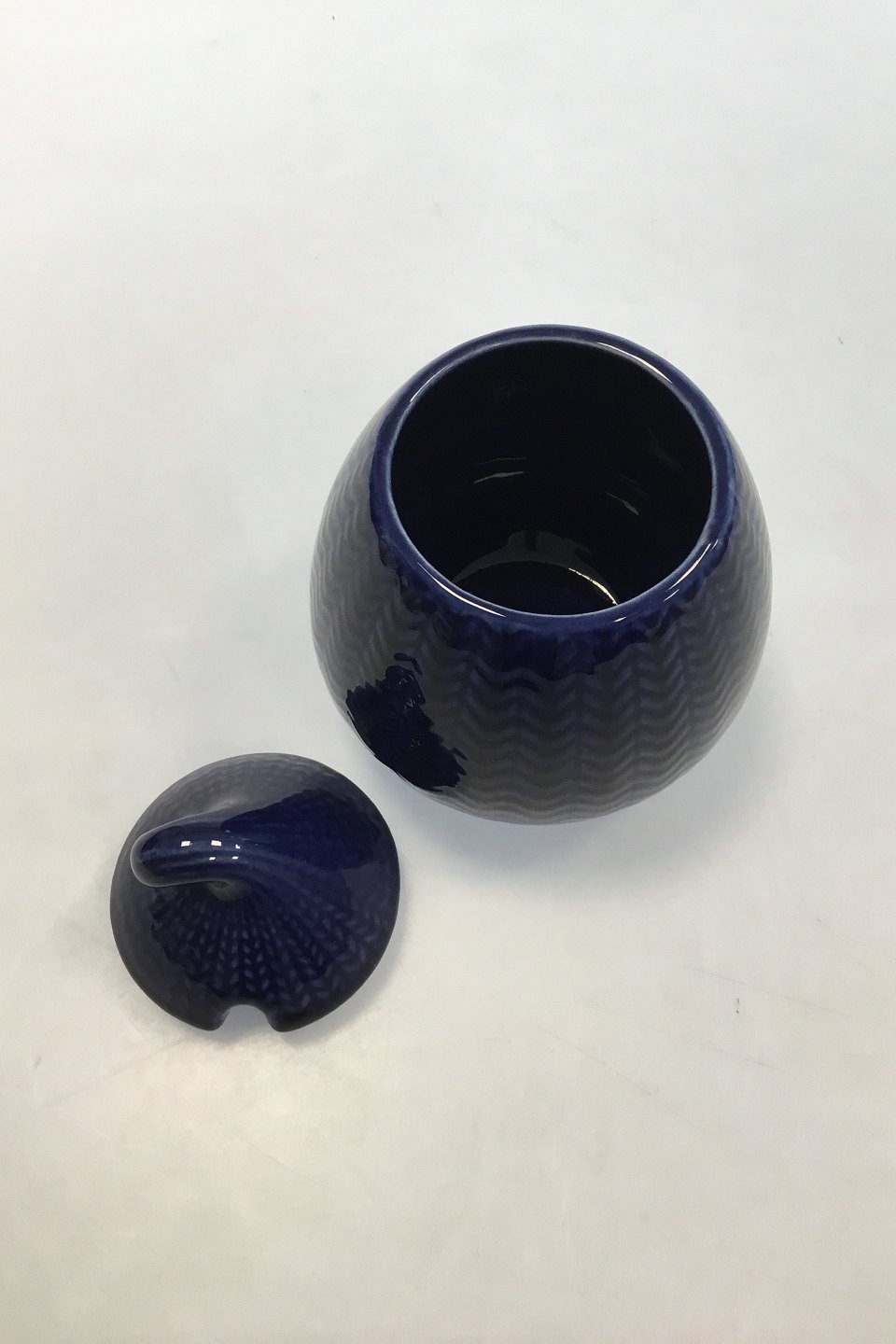 Rørstrand Blå Eld / Blå Ild Marmeladekrukke. Måler 9,5 x 13 cm (3 47/64 x 5 1/8 in).