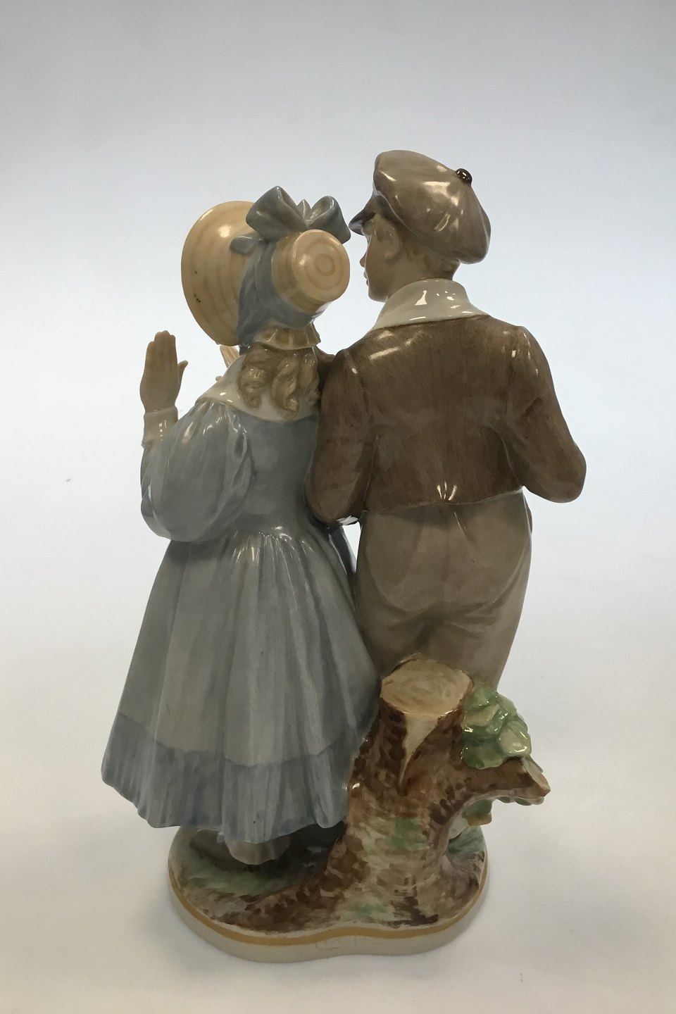 Royal Copenhagen Juliane Marie Figurine with Overglaze No 1783 Hans and Trine. Measures 23.5 cm (9 1/4 in). 1st Quality designed by Chr. Thomsen. Broken fingers on the right hand.