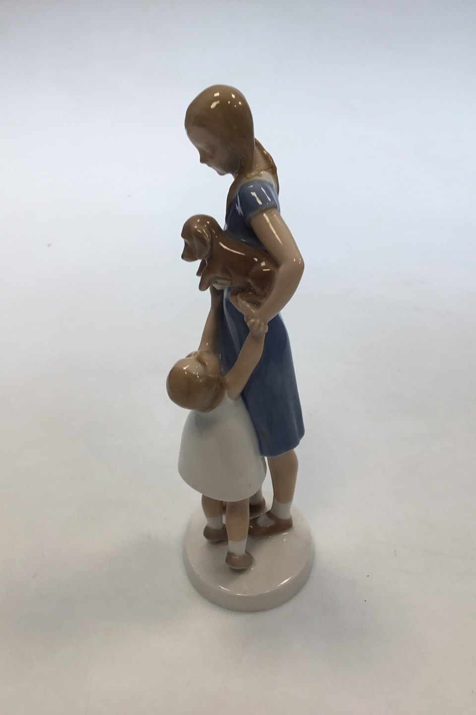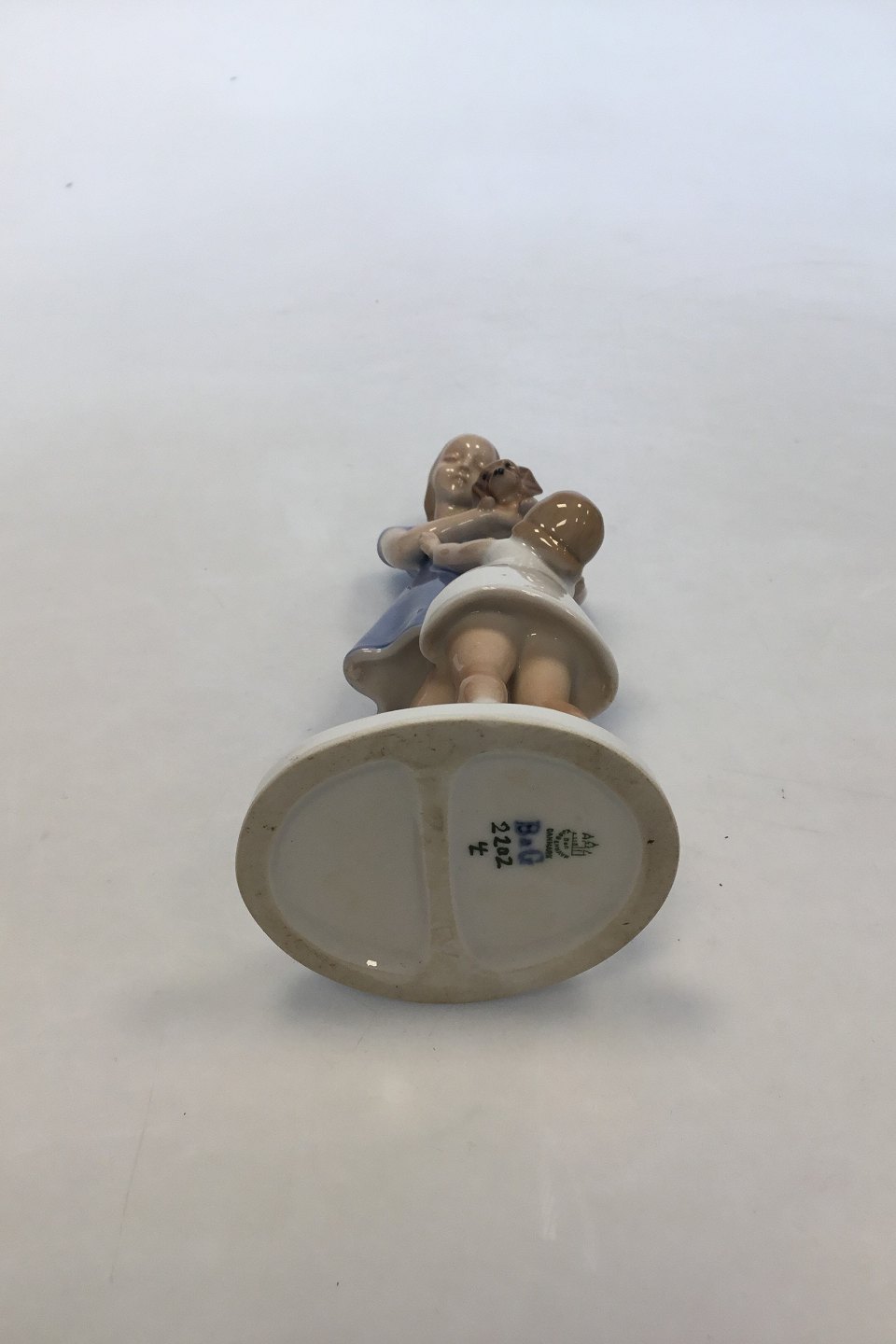 Bing & Grondahl Figurine Girl with Puppy No 2202. Measures 18.5 cm (7 9/32 in). 2nd Quality with glued head.