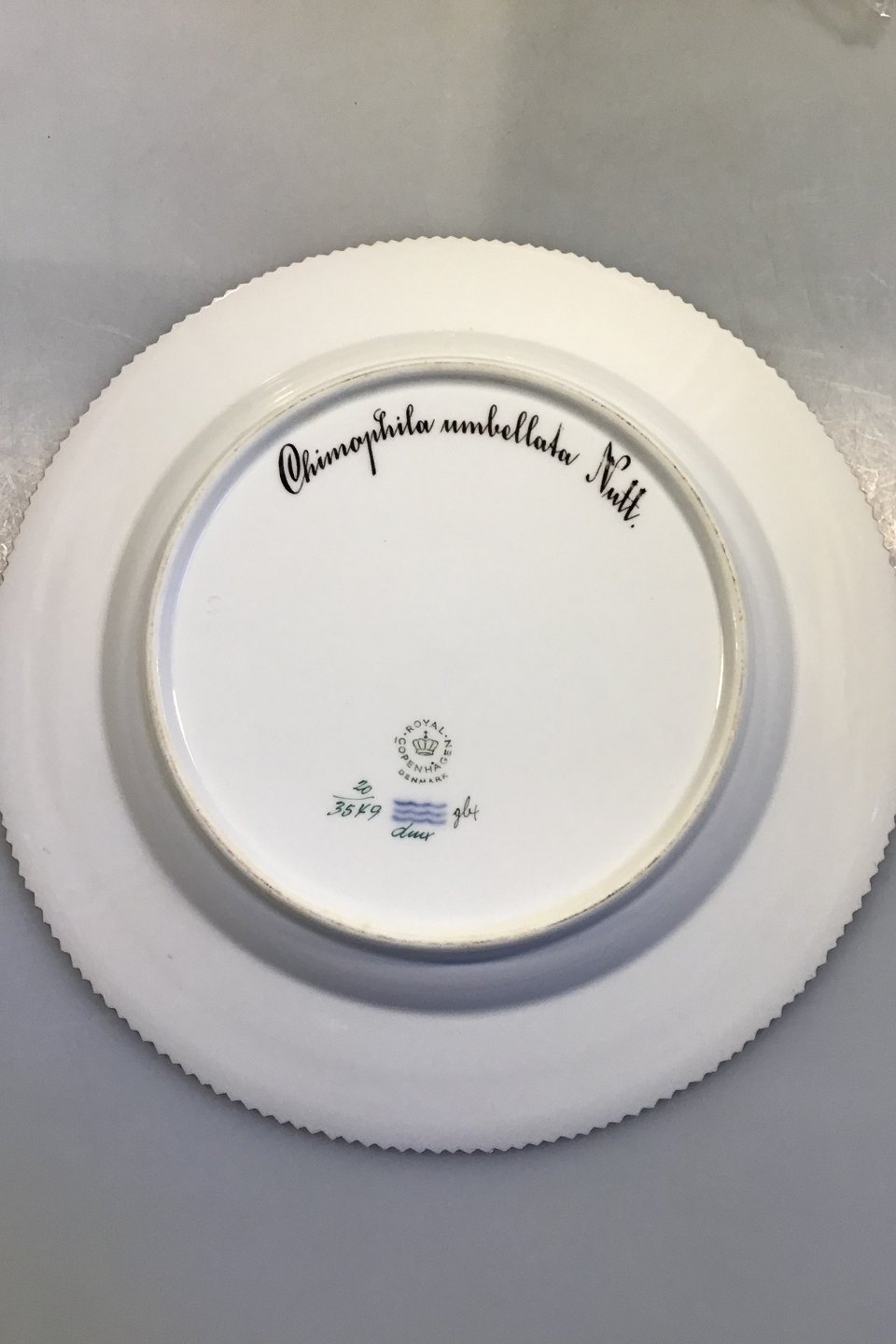 Royal Copenhagen Flora Danica Dinner Plate No 3549. Measures Diam 26 cm. (10 15/64 in) 1. Quality. Latin Name: Chimophila umbellata Nutt.