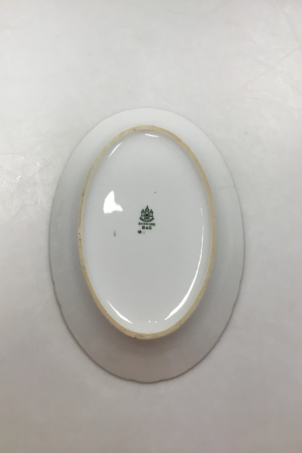 Bing & Grondahl Butterfly with Gold Small Oval Tray No 18. Measures 17,5 x 25 cm (6 57/64 x 9 27/32 in). Slight wear on gold edge.