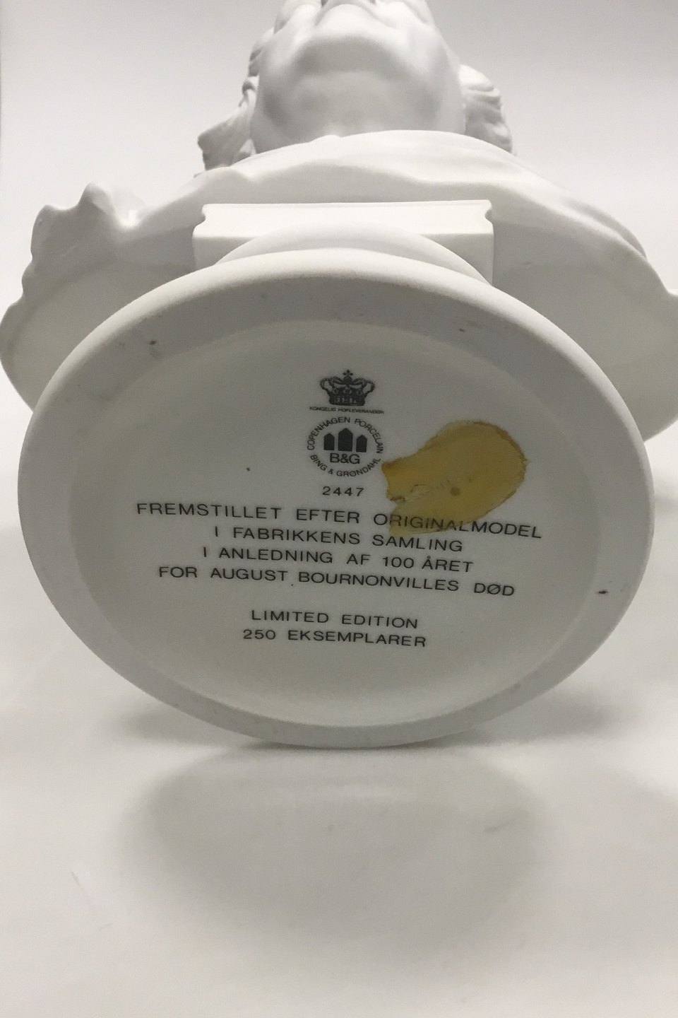 Bing og Grøndahl Bisquit Buste af August Bournonville No 2447. Måler 31 cm ( 12 13/64 in. ). Fremstillet efter originalmodel i fabrikkens samling i anledning af 100 året for August Bournonvilles død. ( 1805 - 1879 )