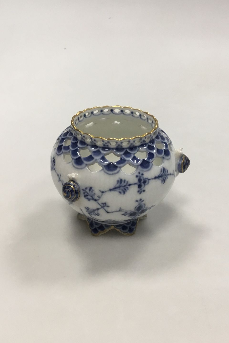 Royal Copenhagen Musselmalet Helblonde med guldkant Lille Vase No 1043. Måler 7,5 cm (2 61/64 in.). Et lille afslag på en fod.