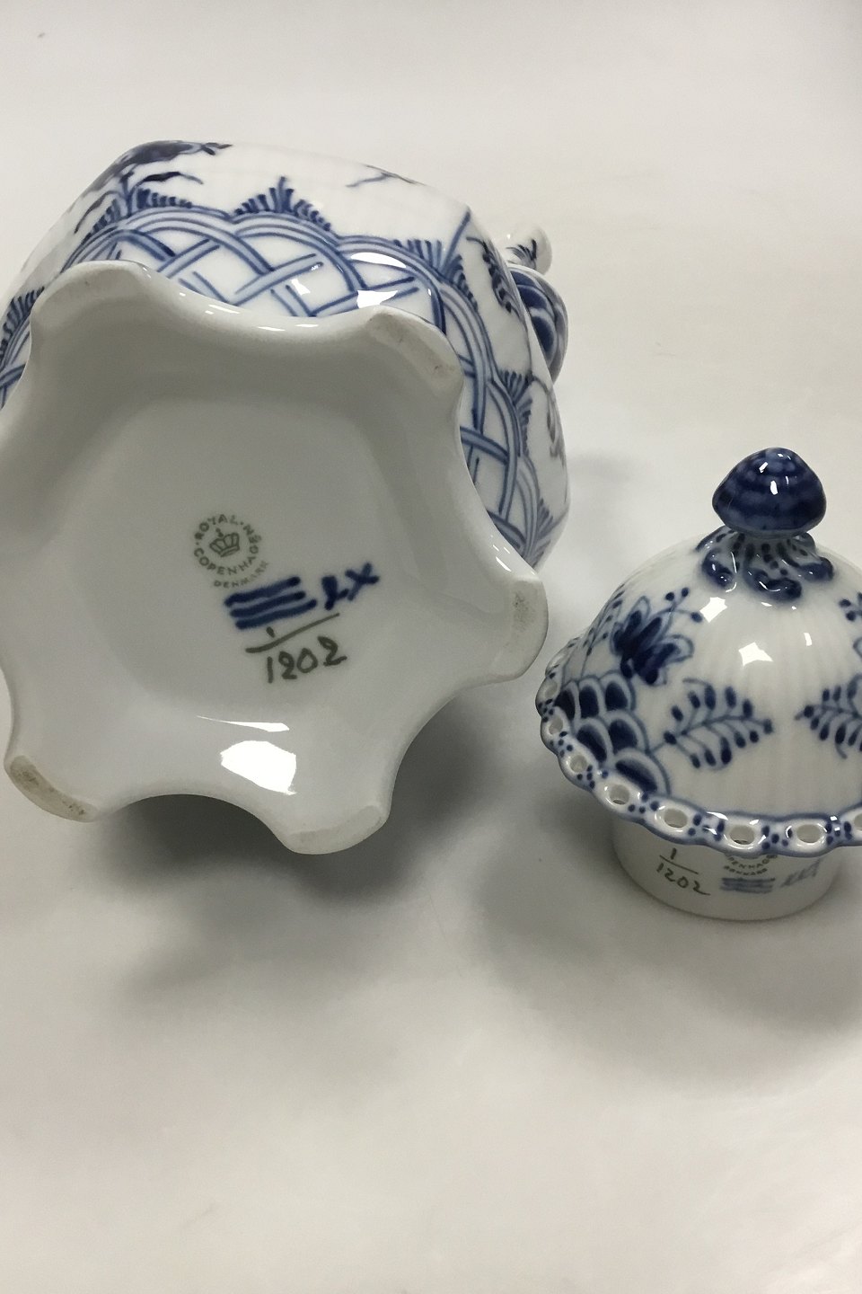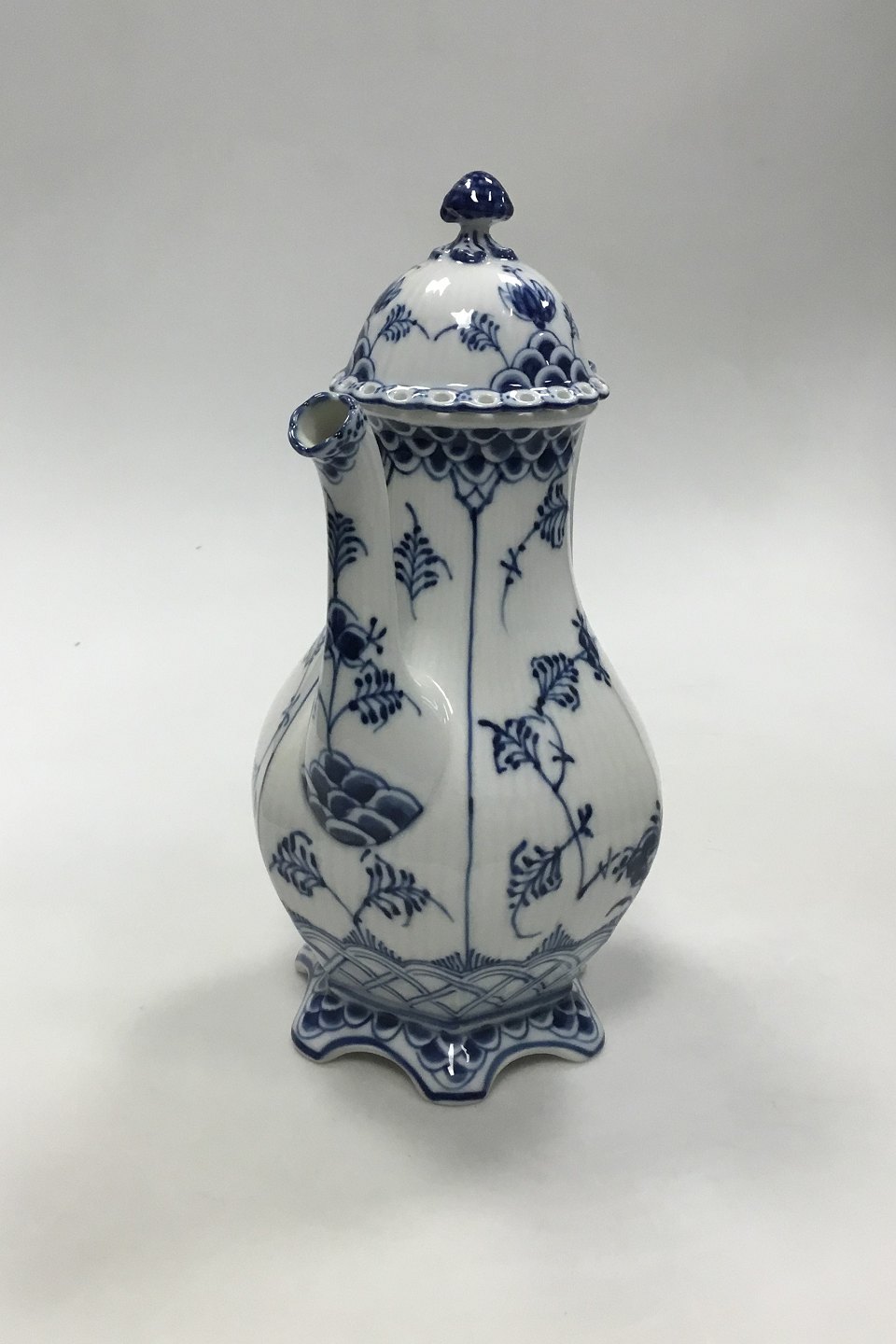 Royal Copenhagen Musselmalet Helblonde sekskantet Kaffekande No 1202. Måler 28,5 cm (11 7/32 in). 1. sortering.