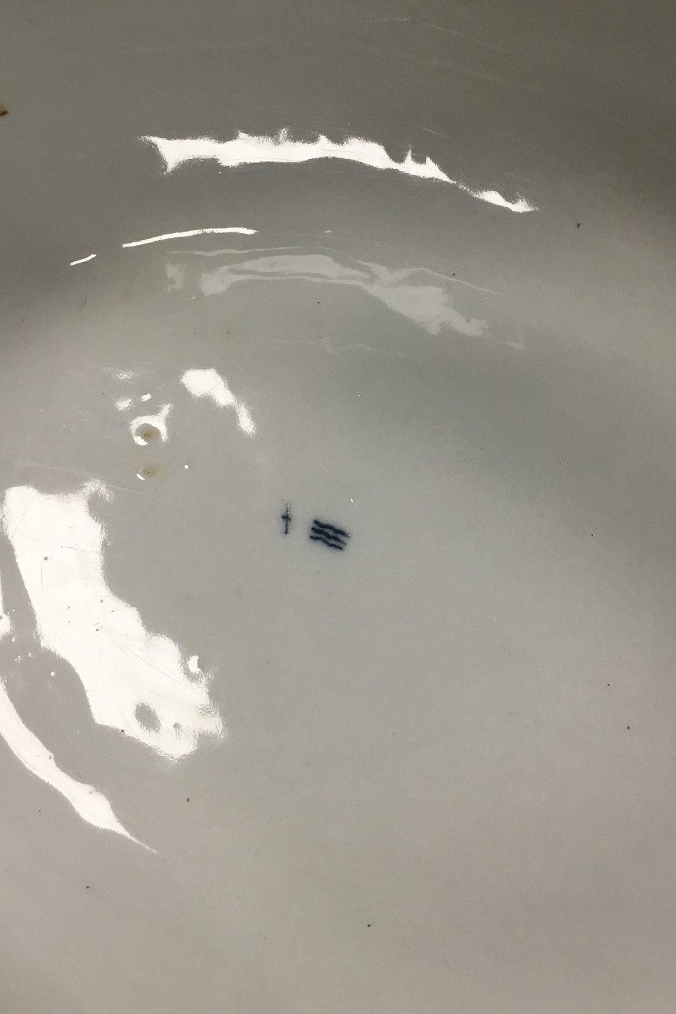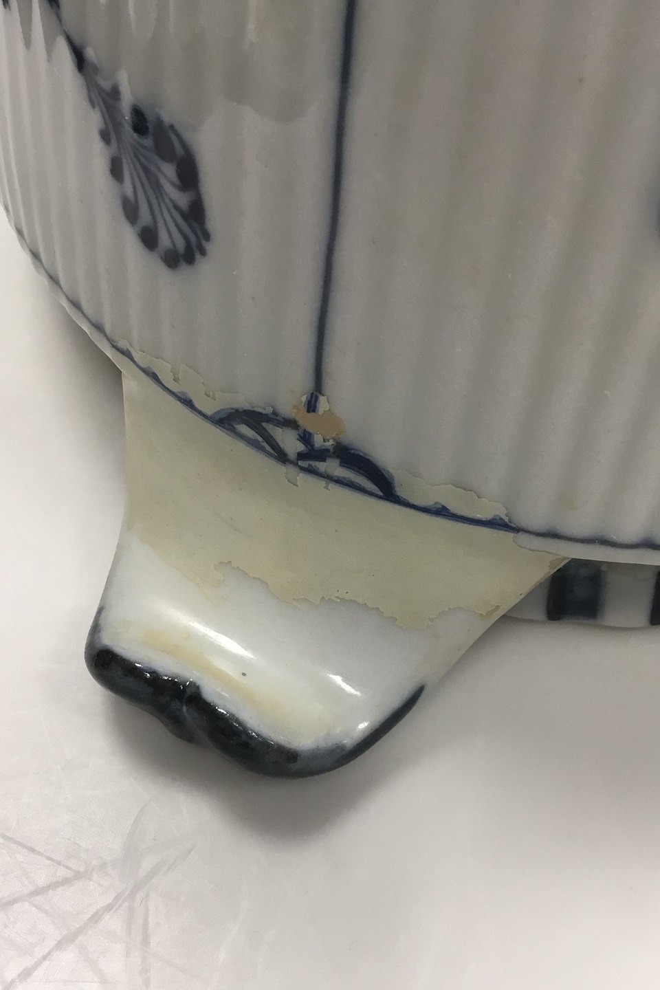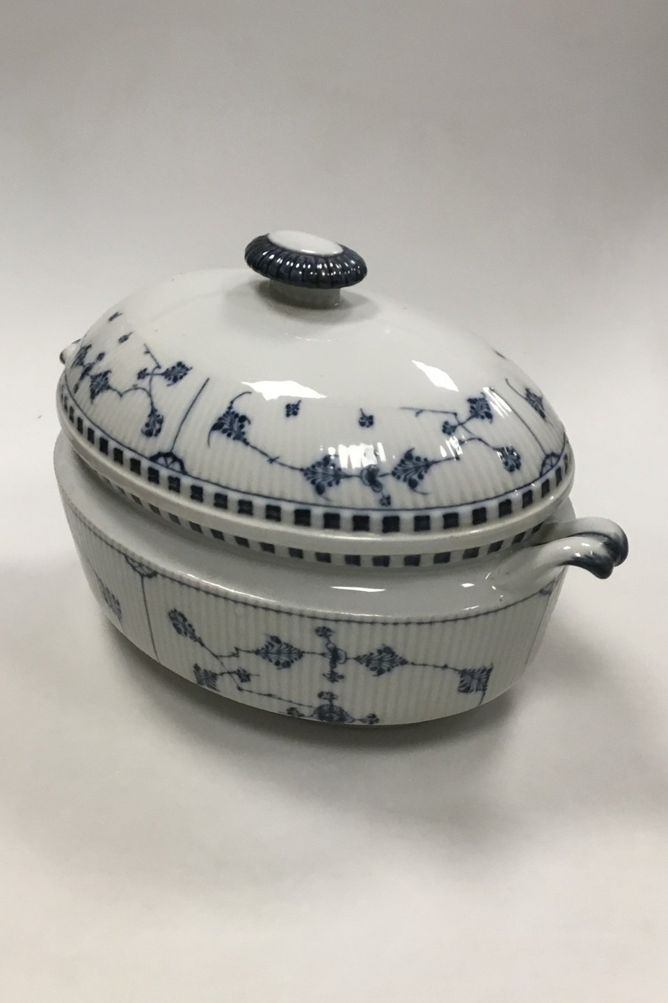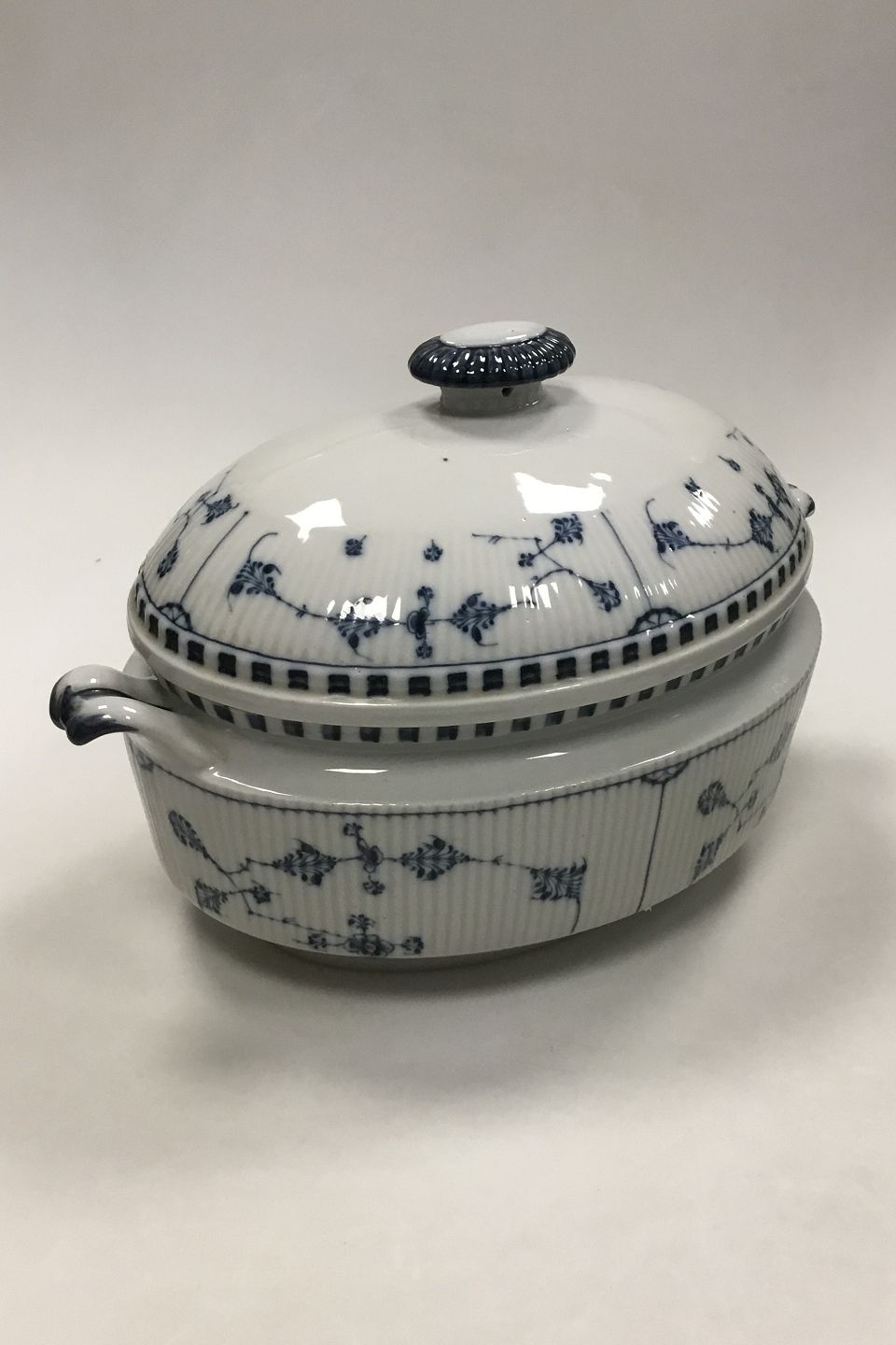 Royal Copenhagen Antik Musselmalet Oval Terrin. 1. sortering. Måler 35 cm (13 25/32 in). Reparation på det ene håndtag.