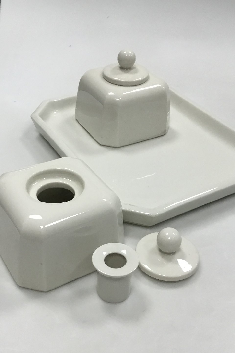 Royal Copenhagen Blanc de Chine Ink Well No 20358. Signed by Hans Henrik Hansen. 1st Quality. Measures 27.5 cm x 22 cm / 10 53/64 in. x 8 21/32 in..