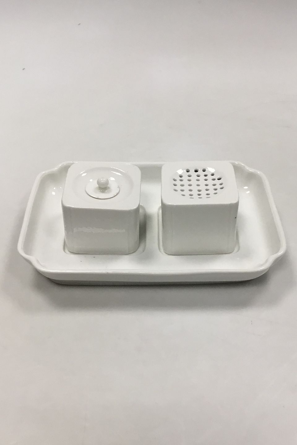 Royal Copenhagen Old Ink Well of white porcelain. Measures 22 cm x 15 cm / 8 21/32 in. x 5 29/32 in. Some minor chips on the lid