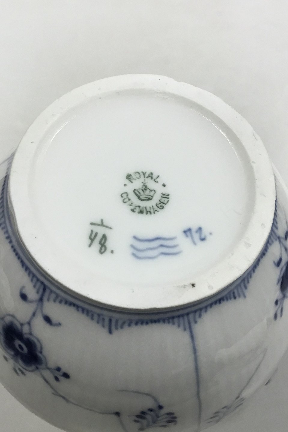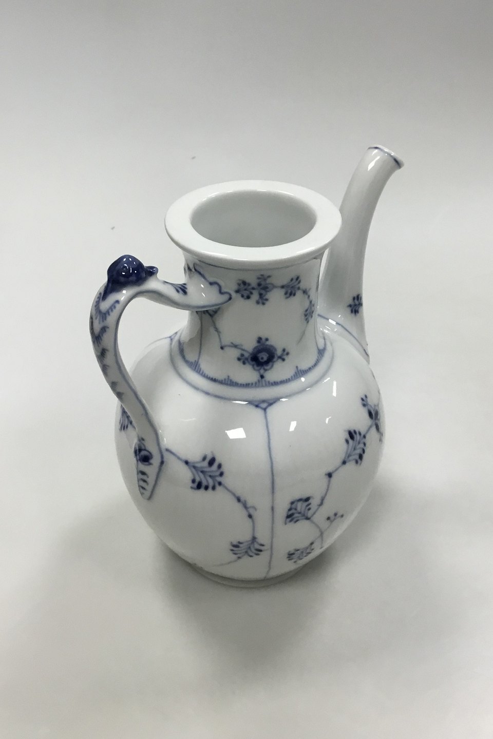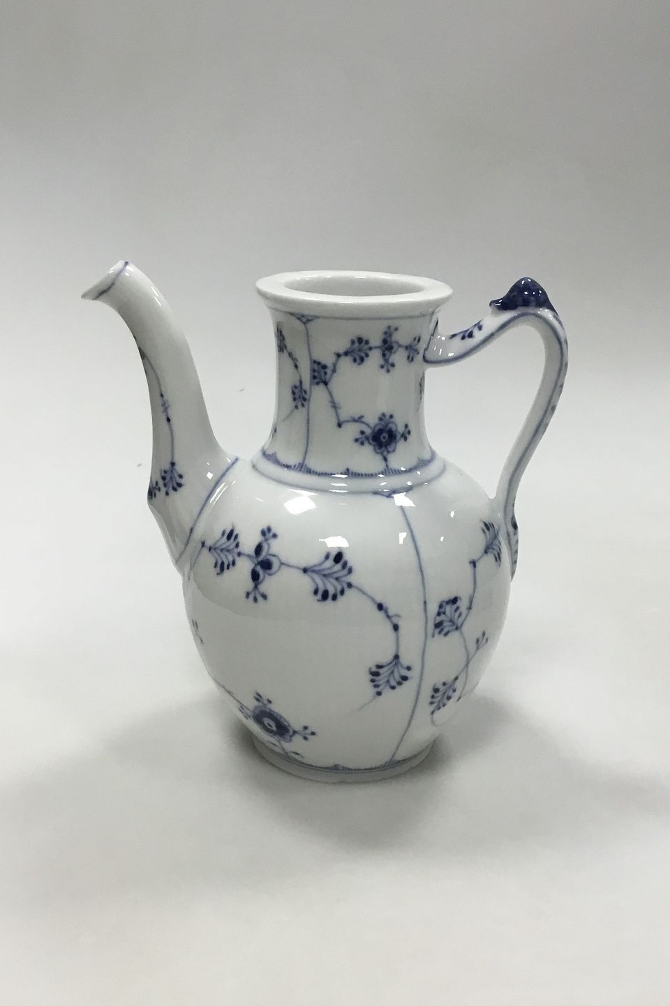 Royal Copenhagen Musselmalet Riflet Kaffekande uden låg No 48. Måler 19 cm ( 7 31/64 in. ) Små chips på foden