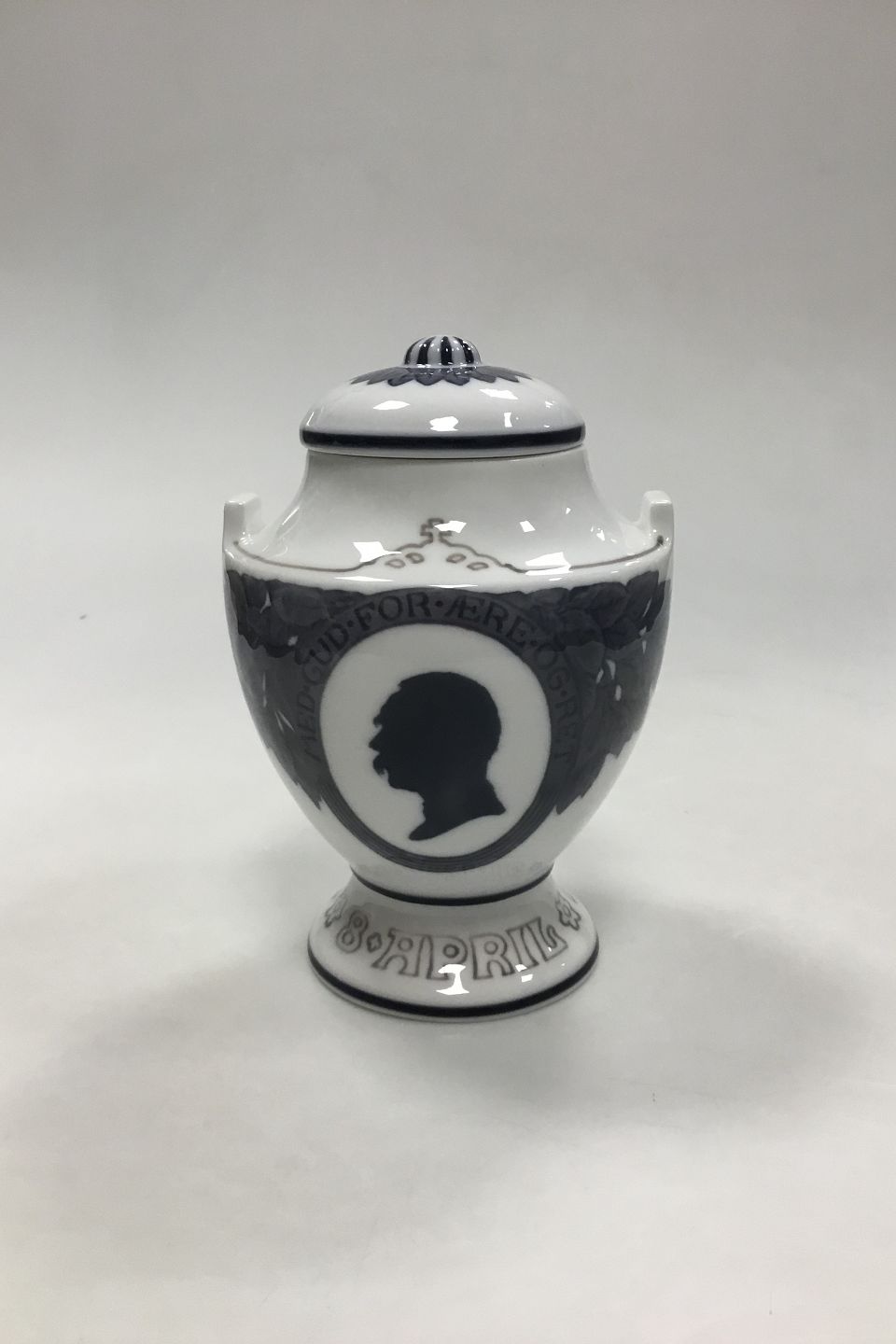 Royal Copenhagen Vase with Lid 8.April 1818-1918 No 156. On the occasion of the 100th anniversary of Christian d. IX“s birth. Measures 17.5 cm (6 57/64 in).