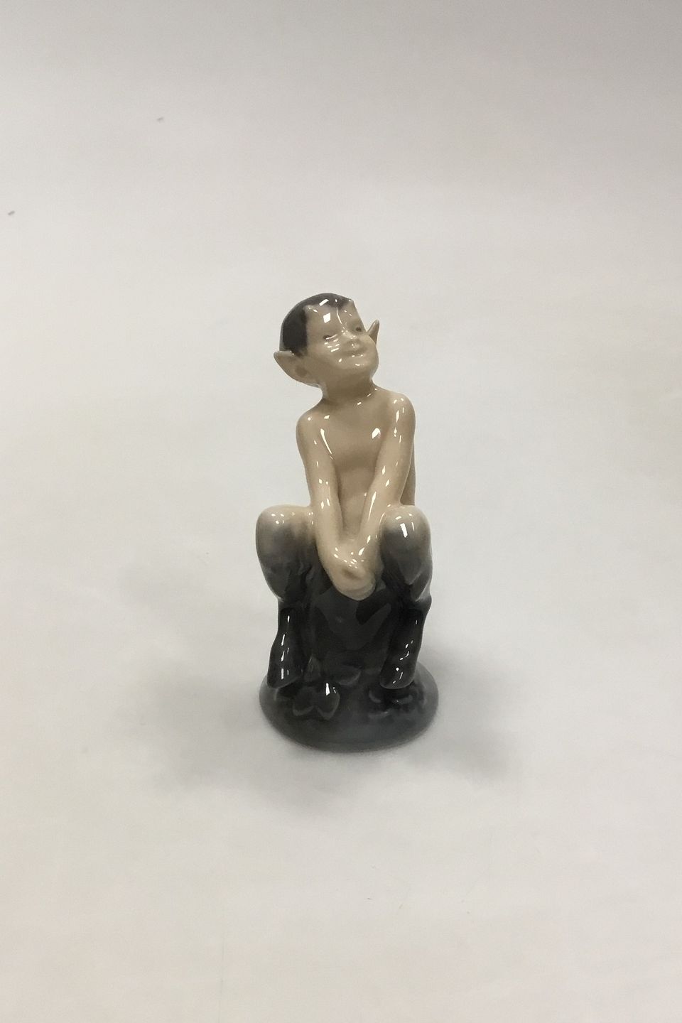 Royal Copenhagen Figur Faun på Træstub No 1738. Måler 8,5 cm (3 11/32 in). I fin stand. Designet af Th. Madsen i 1915.