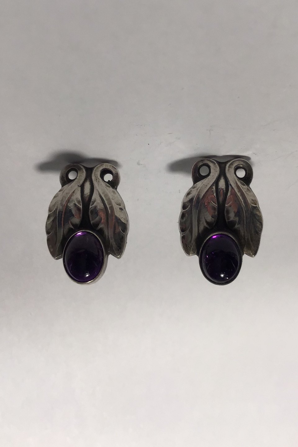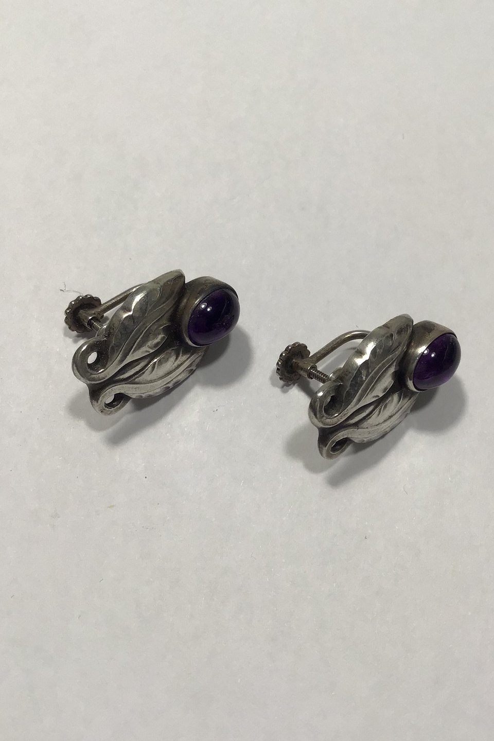 Georg Jensen Sterling Sølv Øreringe No 108 Ametyst (Skruer) Måler 2.4 cm (0 15/16 in) Samlet vægt 8.3 gr / 0.29 oz