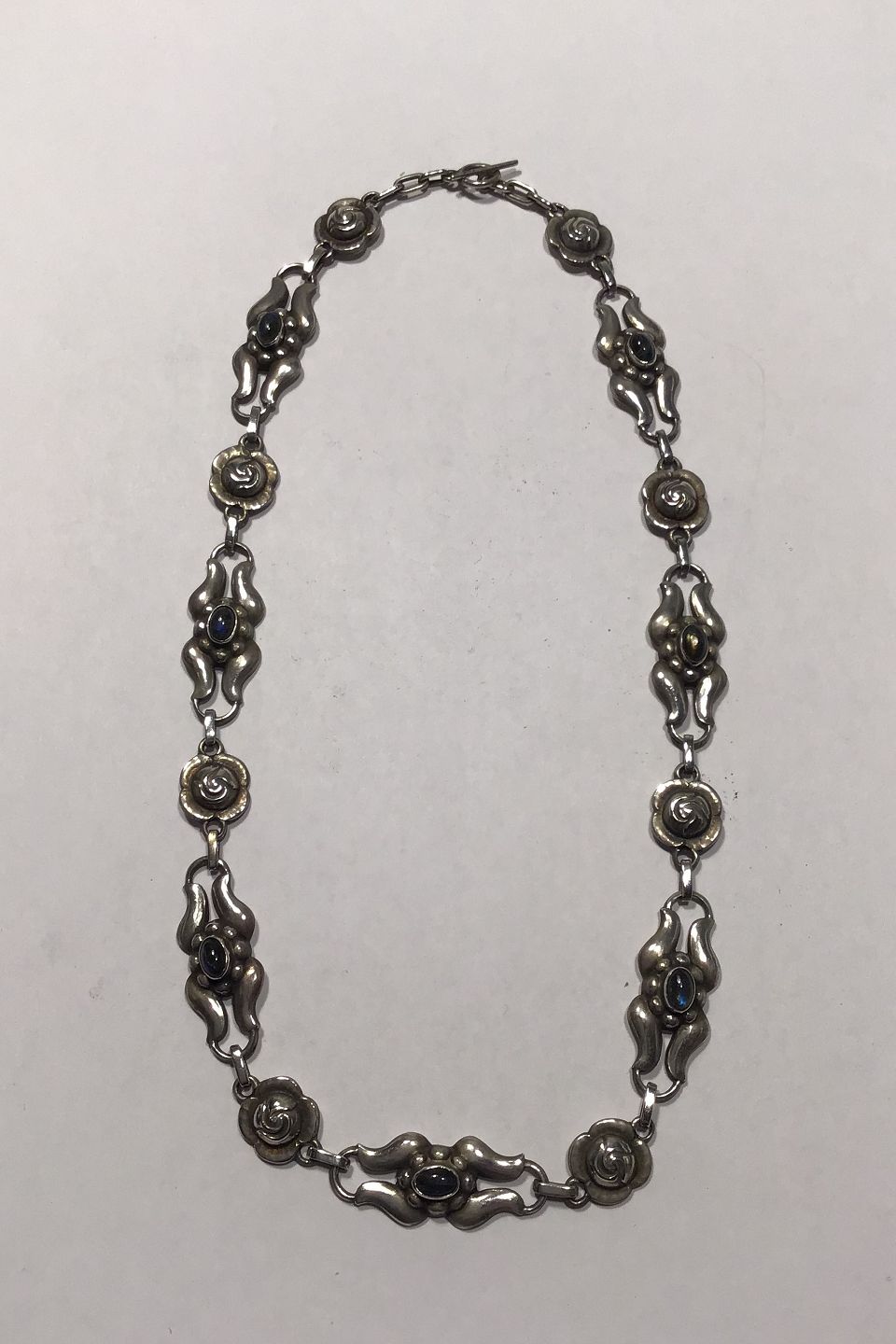 Georg Jensen Sølv Halskæde No. 10 Blå Sten (1915-1927) Måler 42 cm (16½ in) Vægt 30.6 gr / 1.08 oz
