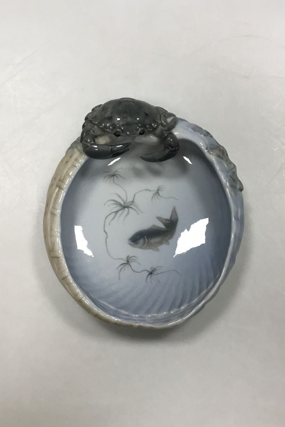 Royal Copenhagen Art Nouveau Skål med Krabbe No. 2465. Måler ca. 25 x 20 cm. 1. Sortering