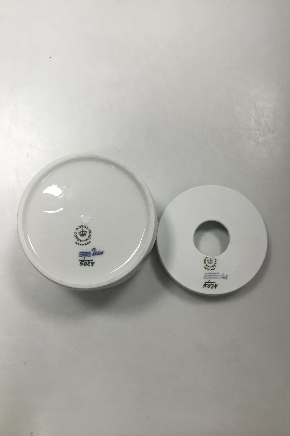 Royal Copenhagen Blue Fluted Plain Lidded Bowl / Bonbonniere No 5024. Measures 11 cm x 7 cm / 4.33 in. x 2.76 in.